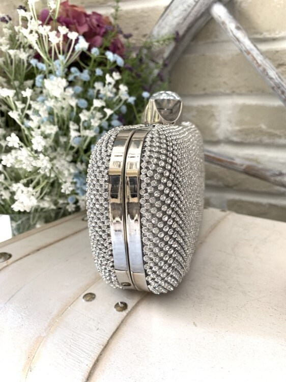 華やかなビジュがエレガントなシルバーカラーバッグです。前面に敷き詰めれれたビジューが煌びやかな雰囲気を放ち上品な演出を叶えてくれます。シンプルなドレスもゴージャスバッグをONすれば、華やかさとお洒落感をブラッシュアップ。 チェーン付きの2way仕様なので、利用シーンによって持ち方を替えられるのも嬉しいポイントです。 結婚式や二次会、各種パーティなど華やかな場面にぴったりなバッグです。