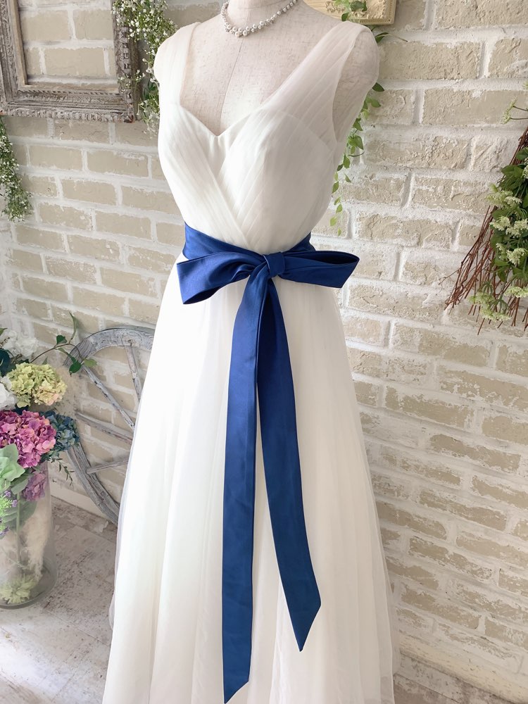 ネイビー光沢ロング幅広めサテン地サッシュベルト