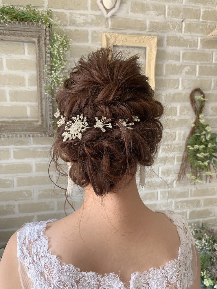 ダイヤモンドの様な輝きで魅了し、披露宴会場の遠くまで輝きが伝わる1点。正統派のデザインは花嫁様のエレガントさをより一層引き立たせてくれることでしょう。披露宴にはもちろん、前撮りや二次会にもオススメです。
