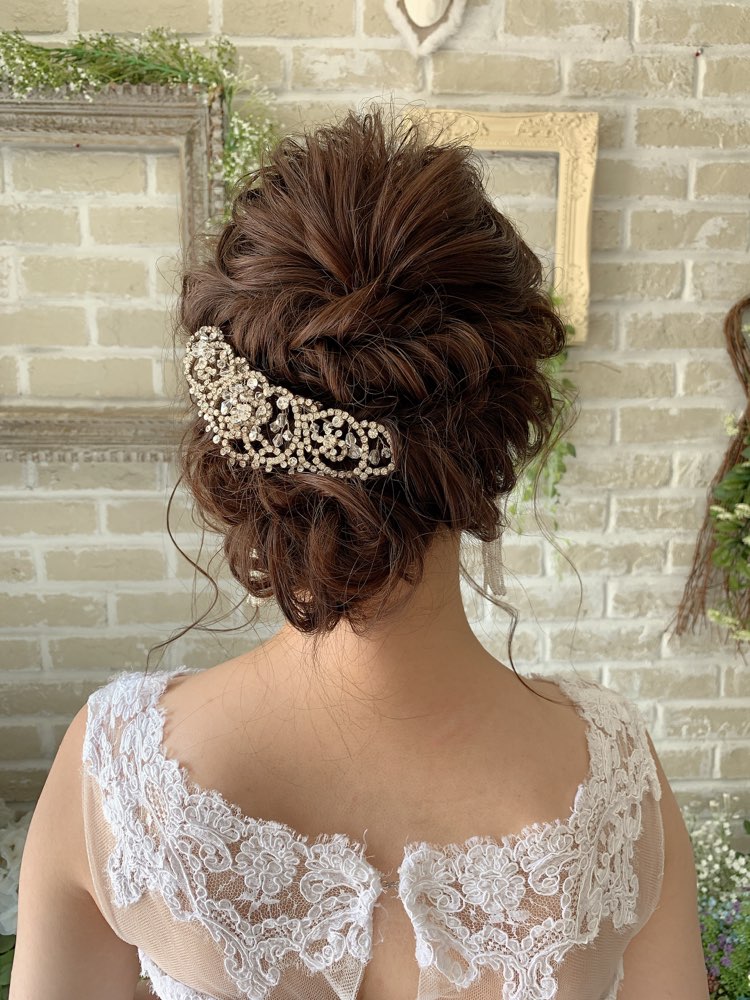 大小の丸いモチーフを並べた上品なヘッドアクセサリー。大きめクリスタルが煌めき、程よい大きさで様々なドレスにマッチ。お式の後の二次会などでもご利用いただけます。 お好きな位置で、花嫁様らしいスタイリングをお楽しみください。