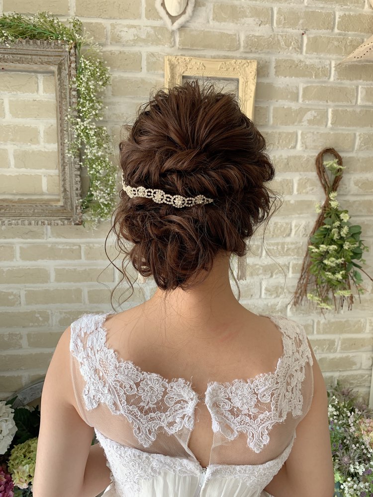 清楚感溢れるレースモチーフのヘッドアクセサリー。華奢で可愛らしいデザインは花嫁様の可憐さをより一層引き立たせてくれることでしょう。披露宴にはもちろん、レストランウエディングや二次会にもオススメの1点です。