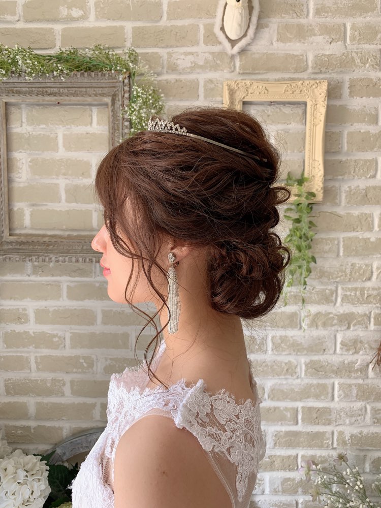 ダイヤモンドの様な輝きで魅了し、披露宴会場の遠くまで輝きが伝わる1点。正統派のデザインは花嫁様のエレガントさをより一層引き立たせてくれることでしょう。披露宴にはもちろん、前撮りや二次会にもオススメです。