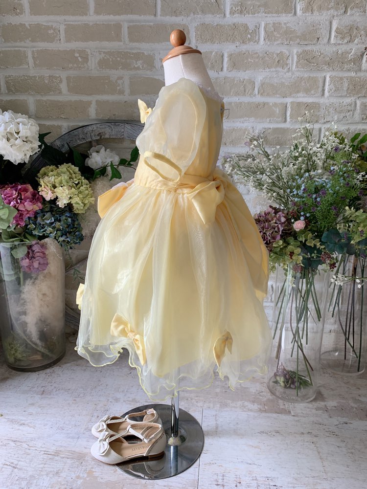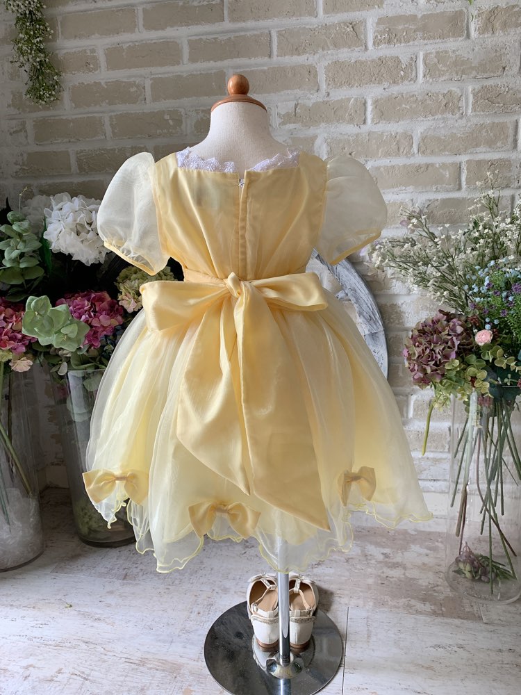 ふんわり膨らんだスカートとお袖、たっぷりのリボンとレース…女の子のあこがれを詰め込んだ、まさに”お姫様のドレス”です。リボンを飾るレースの透け感が、清楚でいて華やかな印象。 胸元のリボンは安全ピン取り外せます。 生地は透明感あふれるオーガンジーで、とことんロマンティックに。 さらにスカートはパニエ内蔵で、シルエットもきれいです。 結婚式のおよばれ、ピアノの発表会、七五三の写真撮影、ハロウィンのコスプレ・仮装、バースデーフォト等様々なシーンで活躍すること間違いなしの一着です。
