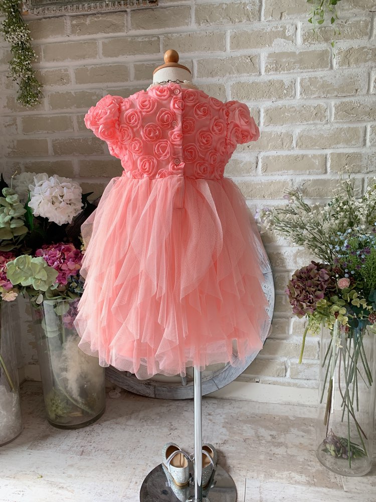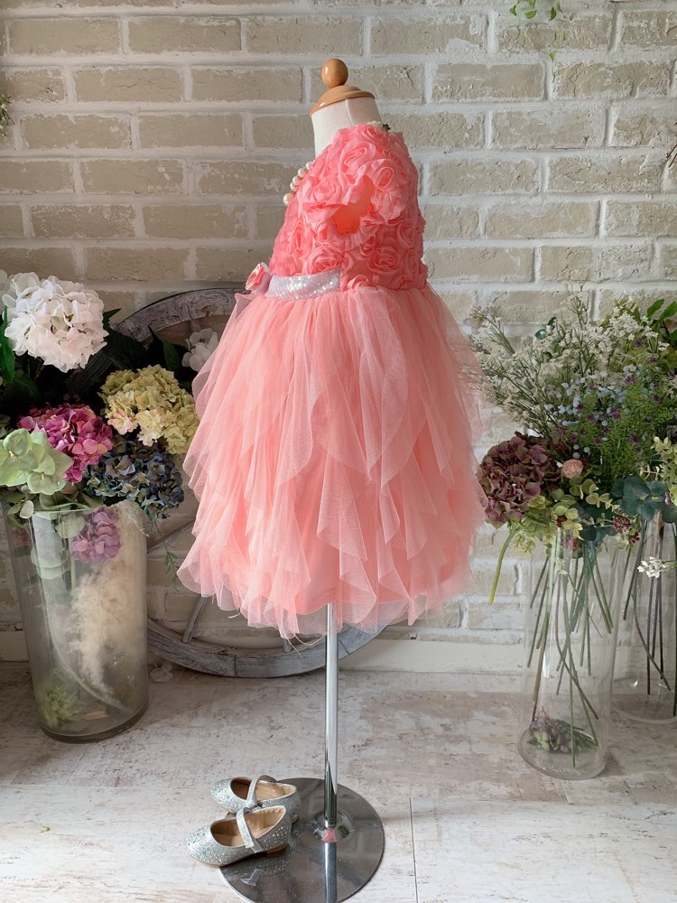 当店で大人気の一着!バラをたくさんあしらったような上身頃と、チュールのふんわりスカートが華やかなキッズドレスです。華やかなローズピンクはまとった瞬間からお姫様気分にしてくれることでしょう。 ピアノ発表会・結婚式・フラワーガールなどのフォーマルシーンにぴったり♪