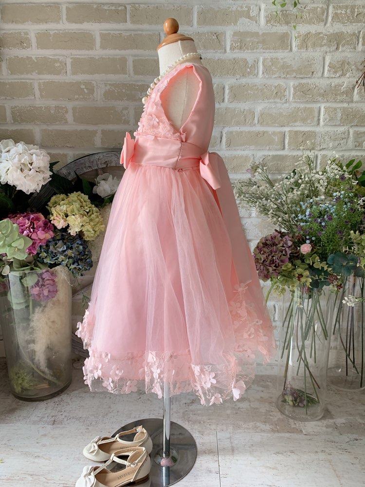 上身頃とスカート裾にたくさんのお花をあしらったキッズドレス。お子様の動きに合わせてお花が揺れる様子は、お花の妖精さながら、ロマンティックそのもの!後ろで幅広のリボンを結ぶようになっています。 後ろ姿も可愛らしくなるだけでなく、ウエストのサイズ調整もできますよ。 ピアノやヴァイオリンの発表会・演奏会・コンクール、結婚式のおよばれ、フラワーガール・リングガールの衣装、七五三やお誕生日の写真撮影、パーティーどのシーンにもぴったりの1着です。