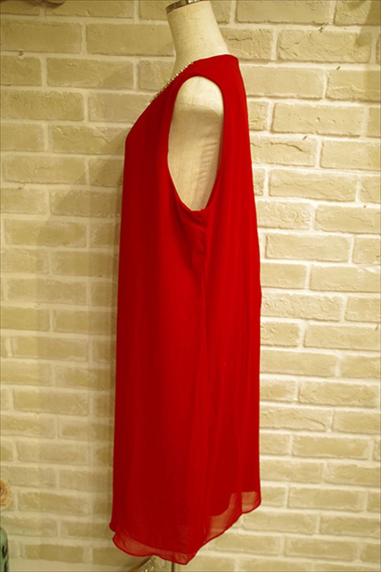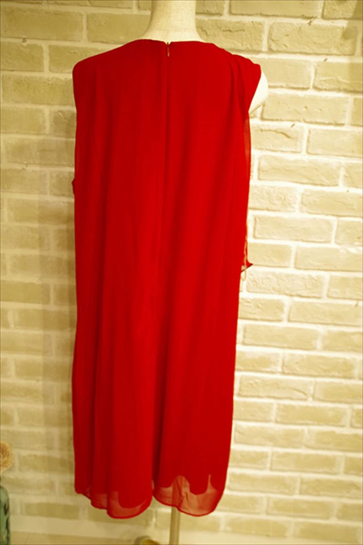 大人のエレガントな落ち着きと華やかさある鮮やかなレッドカラーのドレスです。やわらかなシフォン素材と二枚仕立て動きのあるシルエットで、おしゃれ感と華やかさを感じさせます。すっきりと魅せるAラインで、お腹周りが気になる方や産後の方にも綺麗なシルエットでお楽しみいただけますよ。