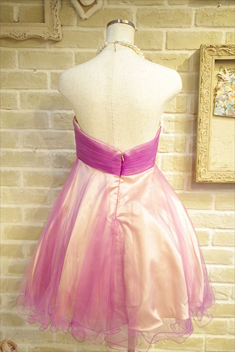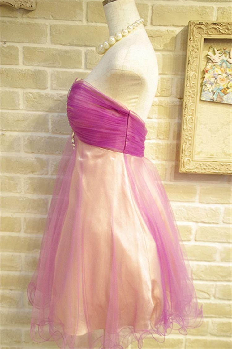 ライトパープル胸元ビジュー付フレアベアドレス