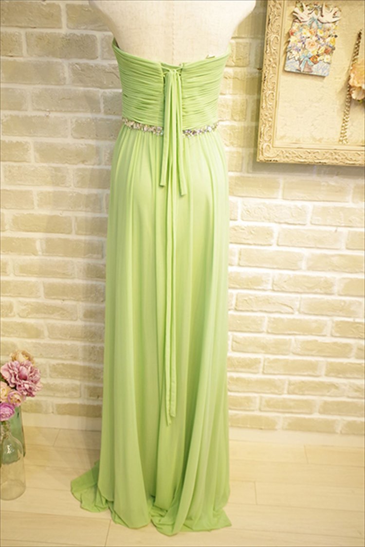 綺麗な若草色が印象的なロングベアドレスです。華やかで主役級な着こなしへと導いてくれる、スレンダーなAラインロングドレス。すっきりとしたデザインが大人かわいい女性にぴったりです。ストレッチ素材なので着心地も楽チンです。パーティーや花嫁さんの二次会パーティーにもオススメです。 胸下切り替えデザインなので脚長効果抜群です。気になるお腹周りもしっかりカバーしてくれますよ。 合わせるアクセサリーでより華やかな表情をプラスできます。 幅広い年代の女性にドレスアップをお楽しみいただかるアイテムです。