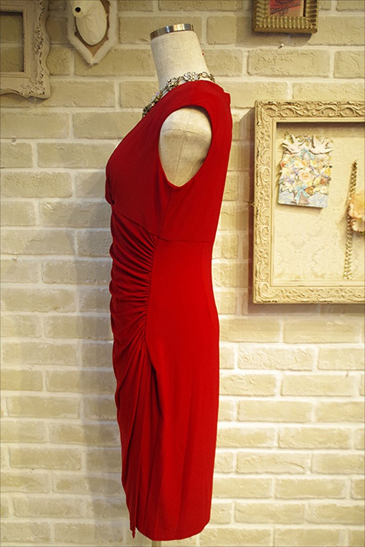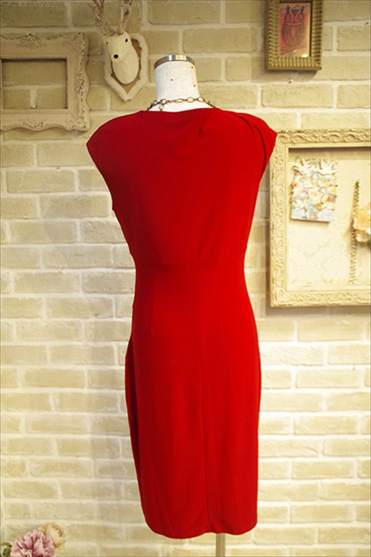 鮮やかで写真映えの良い綺麗なレッドカラーのドレープドレス。ウエストのドレープデザインがエレガントな大人なドレスです。さすが王道のRALPH LAURENだけあってこだわりのシルエットで、上品さとこなれ感を演出します。ウエスト周りを覆うようなデザインは、スタイルアップにも一役!
