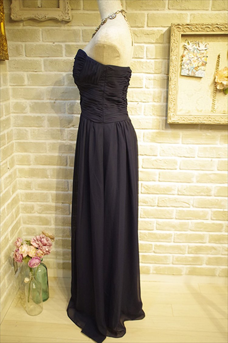 シックでエレガントなネイビーのシンプルな飽きのこないデザインのロングドレスです。胸下切り替えで脚長効果抜群です。生地はやわらかなテロ落としたシフォン素材です。後ろは編み上げなのである程度のサイズは対応できます。あわせやすいネイビーカラーのドレスは、どんな羽織ものでも綺麗にコーディネートが可能。合わせるアクセが大きめのビジュー系ならばナイトパーティーや発表会、演奏会に。パールのネックレスを合わせればご親族の結婚式のお呼ばれにもオススメです。お母様としてご出席される場合のドレスとしてもオススメです。着る人の年齢を選ばないので、幅広い年齢層の女性にご着用頂けます。演奏会や、お呼ばれシーンなどに華やかに着こなしていただける1着です。