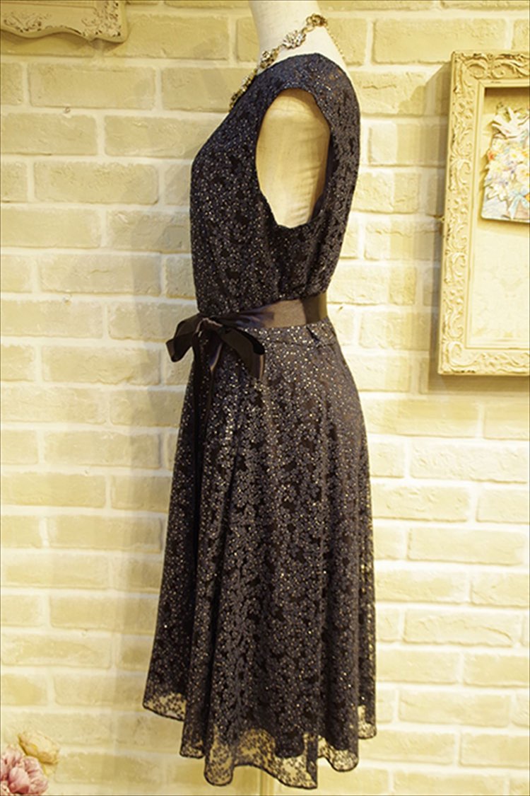 エレガントで落ち着いた大人なフェミニンさを感じるネイビーカラーのドレスです。ドレス全体に施された柄が、ドレスの品の良さを感じさせ、誰からも好感度を持たれる優秀な一着。王道デザインのフィット&フレアで、清楚でフォーマルな印象に。 上品な華やぎで大人の可愛らしいスタイルをお好みの方におすすめです。 フレア袖のボレロやエレガントなパールネックレスなどを合わせると王道のゲストドレスコーディネートの完成。 ご親族様の結婚式や食事会などフォーマルなシーンに安心してご利用いただけるドレスです。