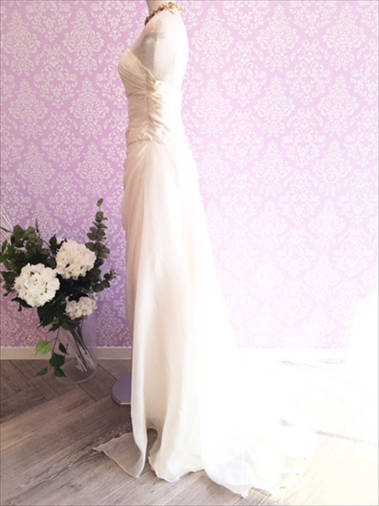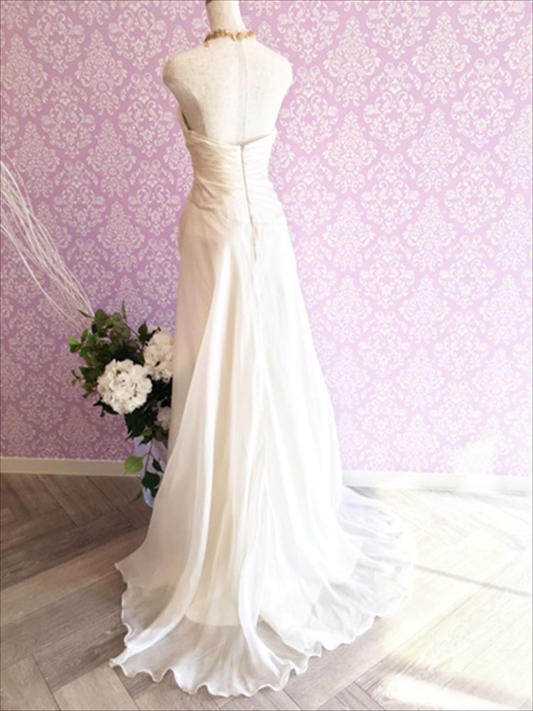 大人エレガントで綺麗に決まるロングドレス。柔らかな素材を使用しているので、着心地の良さとシルエットの美しさは抜群!前の裾が短くなっているので、つまづく心配もなく、ロングドレスに慣れていない方にもお勧め。 ベアタイプでスッキリとした胸元には、ぜひ大ぶりのネックレスで華やかさを演出して! 着るだけで痩せて見えるドレスを着て、一生に一度の機会を彩ってみてください♪