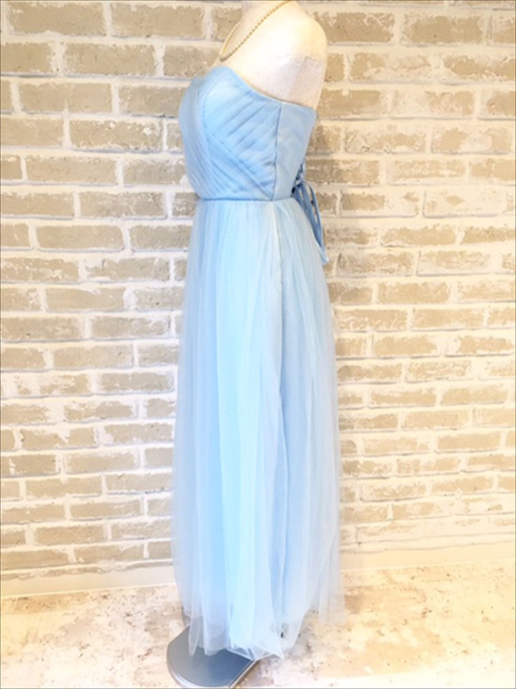 ライトブルーブライズメイドロングマキシ丈チュールドレス