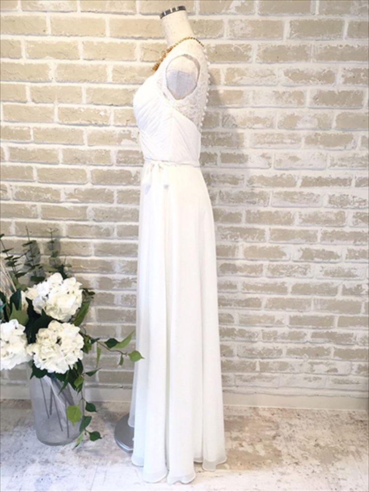 ショルダー部分にあしらわれた刺繍が印象的な人気の一着です。うしろの大きく開いた背中やレースアップで大人の女性らしさもプラスしてくれます。フェクボタンなので着付けも楽々です♪ リゾート挙式にお勧めのドレスです。