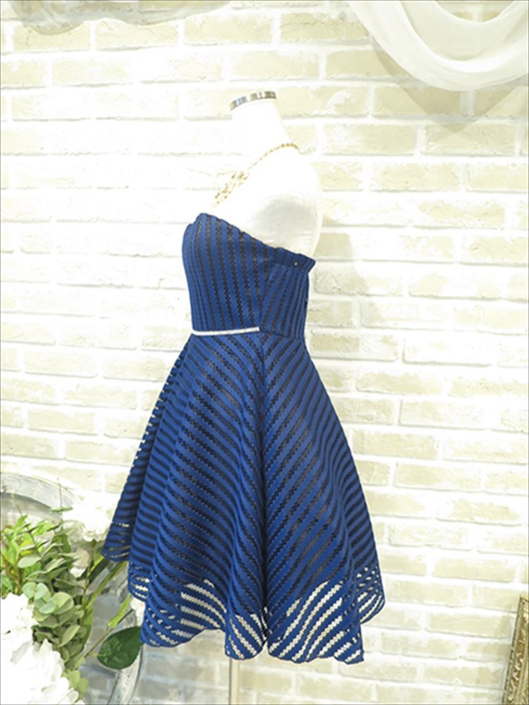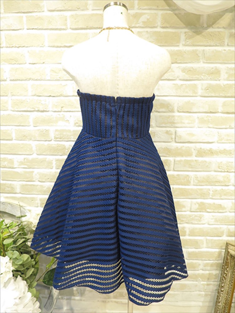 一枚で存在感のある着こなしが叶うネイビーカラーのベアドレス。?定番のネイビーも、これなら印象被りの心配は無用!!ウエストのビジューが、全体の甘さを上手におさえ”大人可愛い”テイストに。? レース素材が女性らしさを引き上げます。 ??差し色に濃いめの反対色のバッグや小物を入れるのも、おすすめのコーディネートです♪ 結婚式参列や謝恩会などのパーティーシーンまで、フェミニンなドレススタイルをお楽しみいただけます。