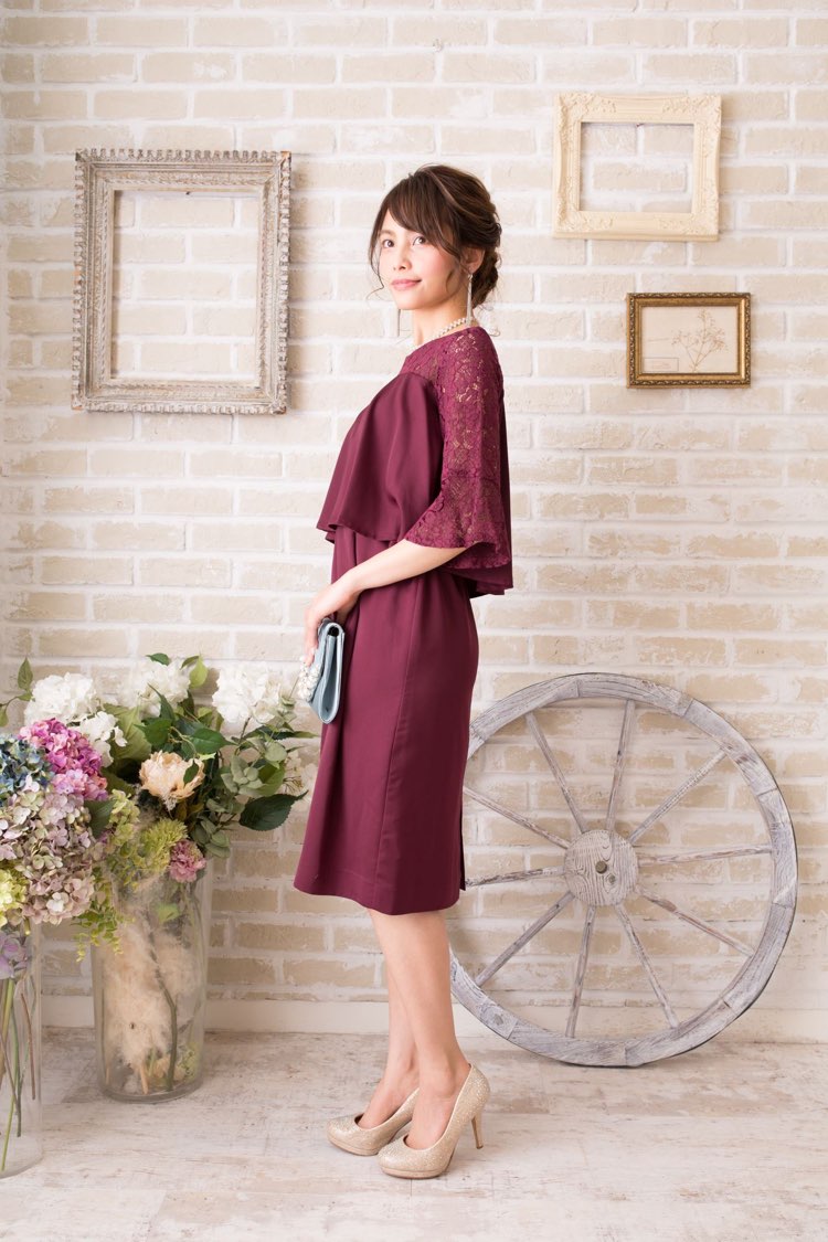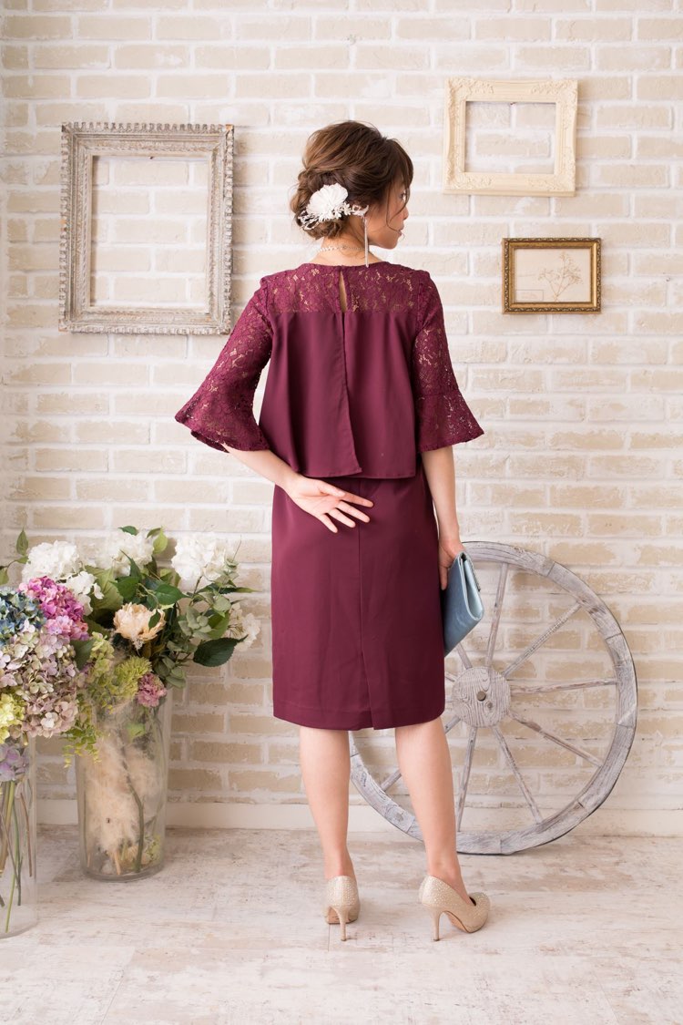 女性の気になる体型ポイントを覆い隠すカバー力と大人可愛いを両立させた、レース切替のフレアスリーブワンピースドレス。ヨーク部分と袖部分のレースが、程よい透け感を生み出し、上品なレディスタイルを演出します。さらにトップス部分のフレアデザインがウエスト部分をエレガントにカバー。スカート部分のセミコクーンシルエットのタイトラインと相まって、美しいボディラインを生み出すドレスに仕上がりました。