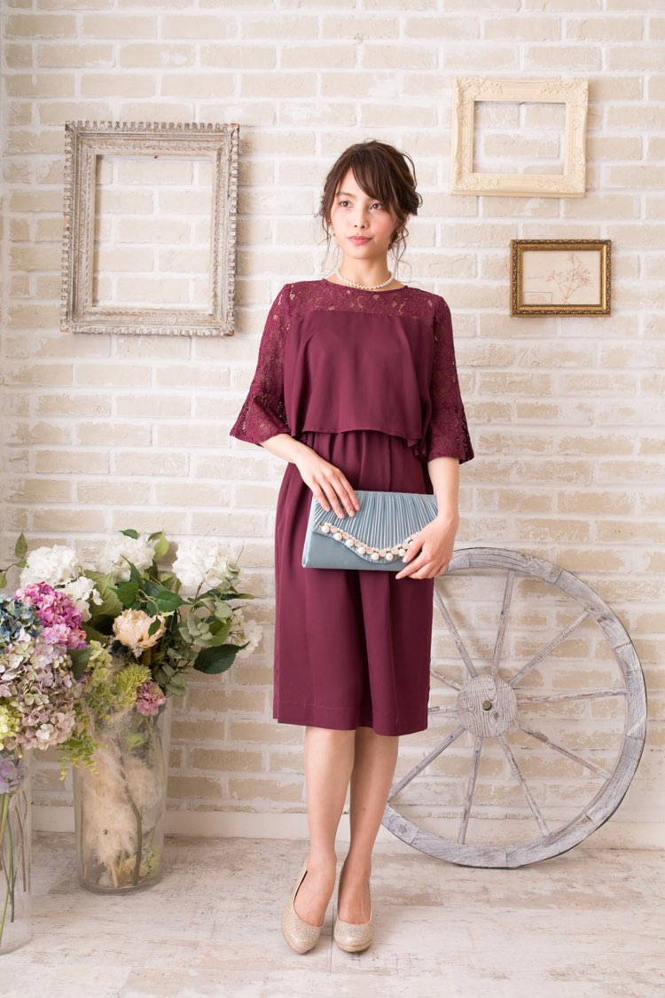 気になる二の腕をカバーできる七分袖デザインで、レースには繊細なフラワー模様を使用しています。