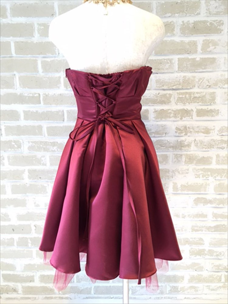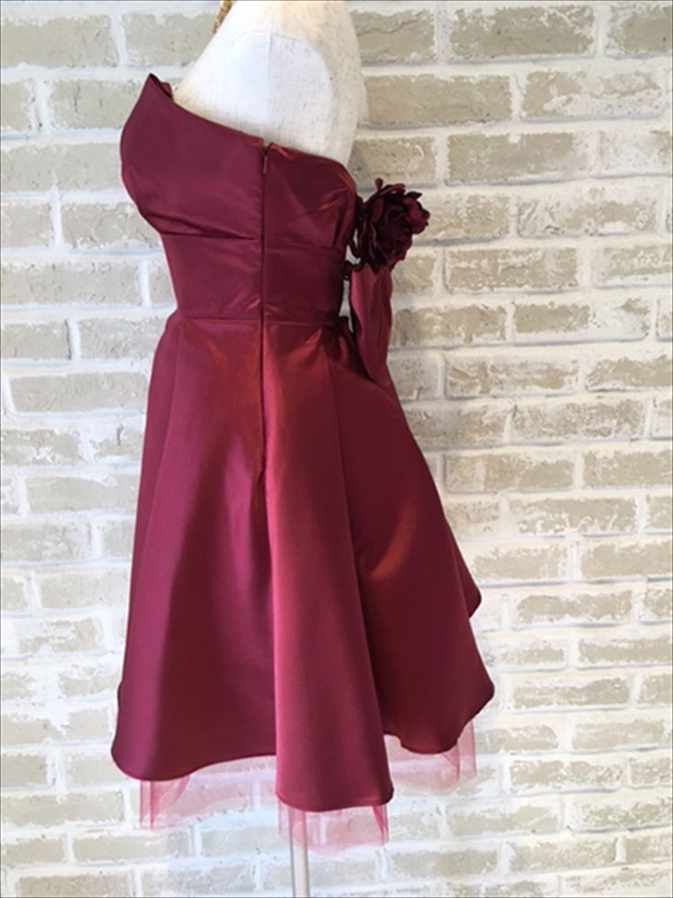 大人な色合いのミニベアドレス。しっかりとした質感の生地は絶妙なバーガンディカラー。ミニ丈と相まって大人セクシーな印象を与えます。