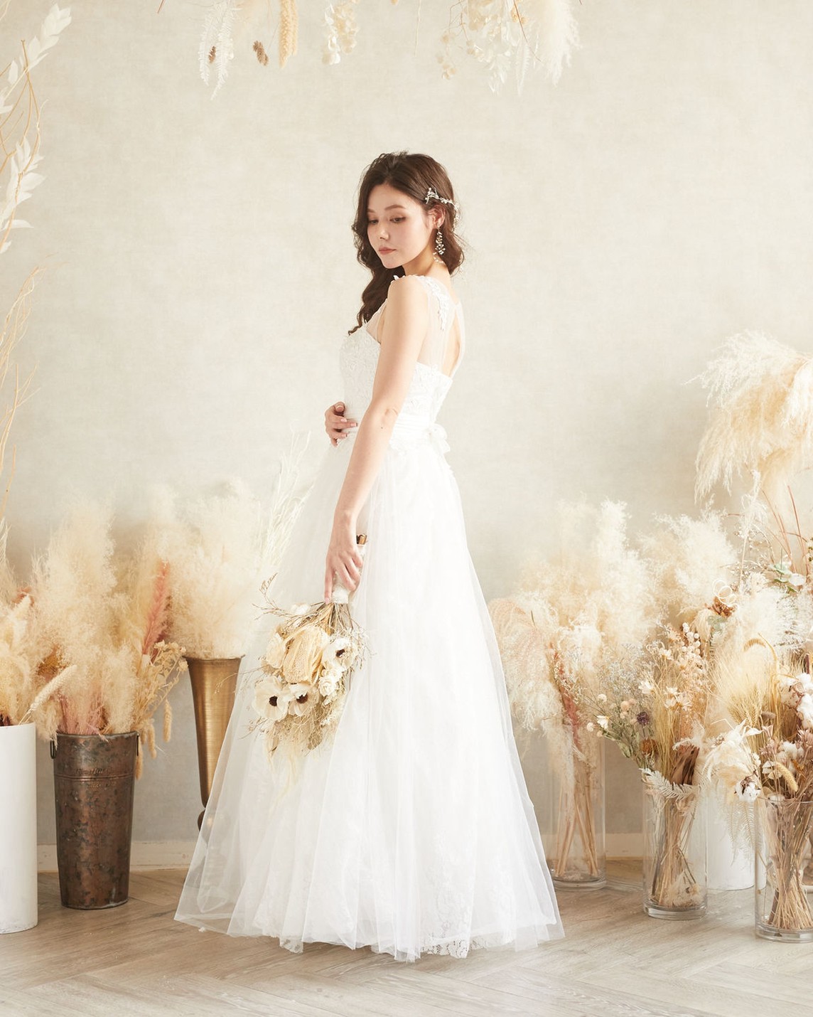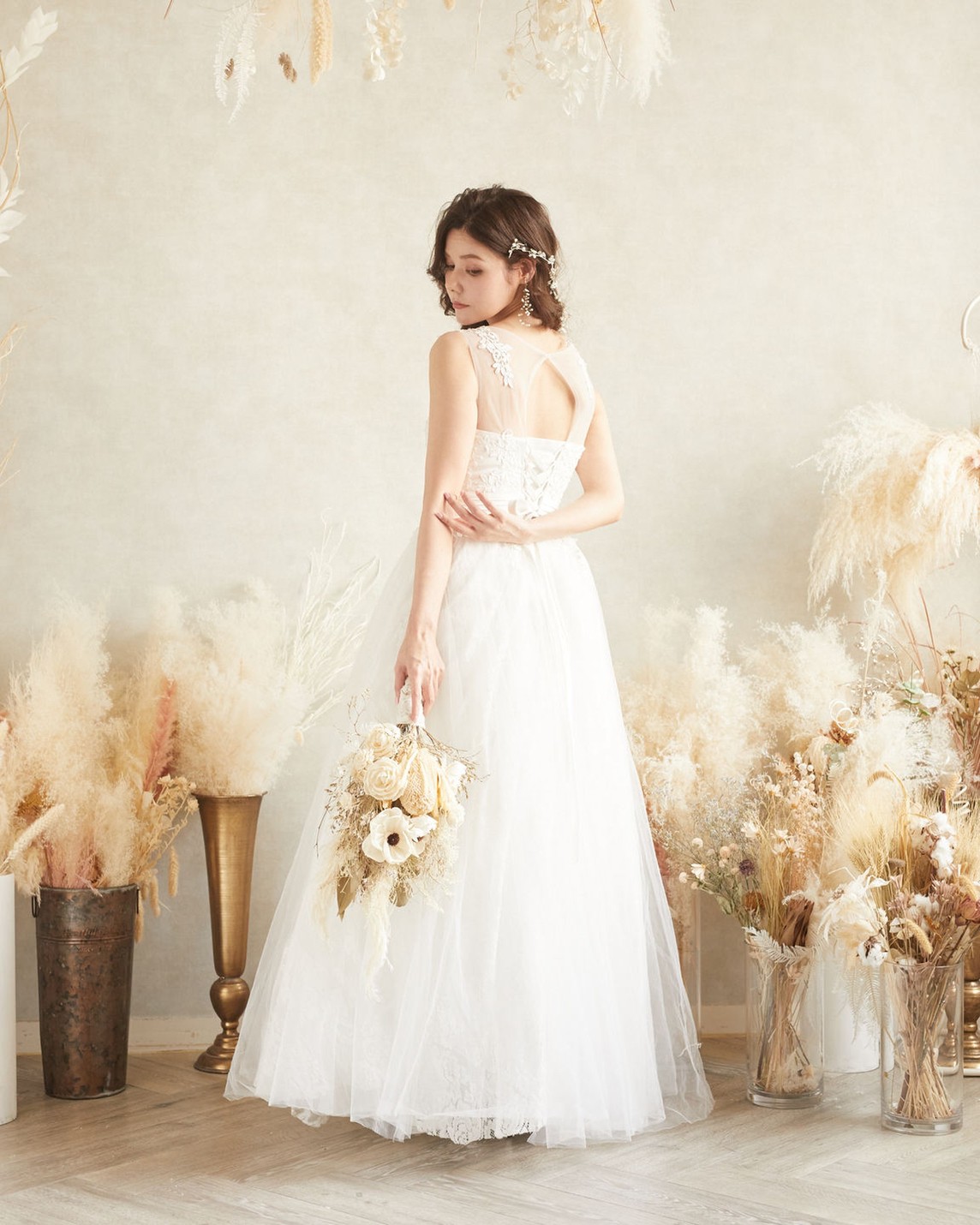 一部バックが編み上げになっているので、ジャストフィットで着ていただけるかと思います。