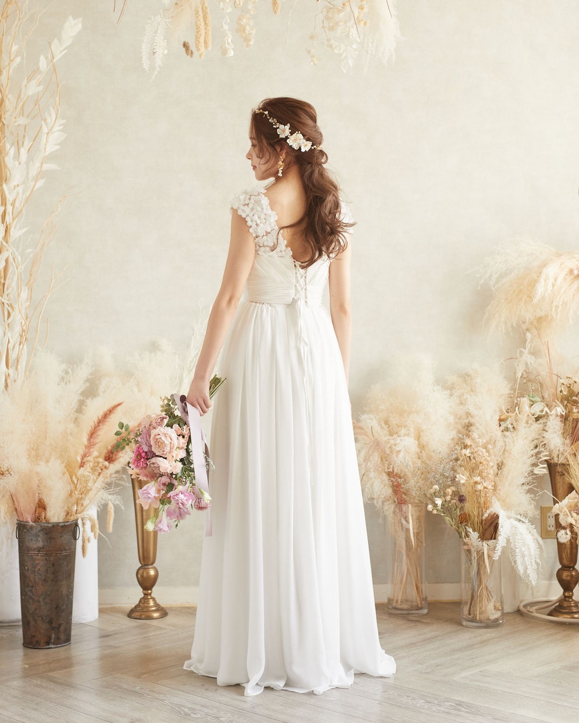 一部バックがゴムと編み上げになっているので、ジャストフィットで着ていただけるかと思います。
