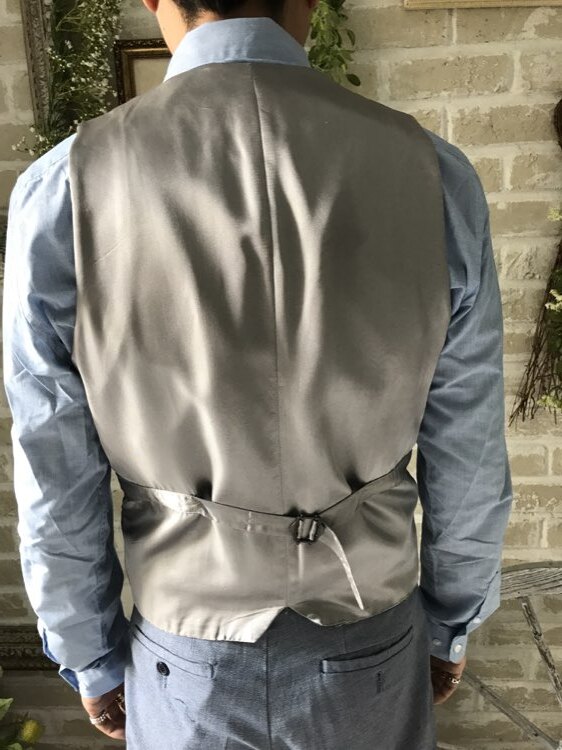 薄い水色(ライトブルー)にホワイトのチェック柄で綿素材の春夏向けのベスト。このベストは単品の展開です。ネイビー、グレー、ホワイト、ブラウン、ブラック、ワインレッド、ライトブルー、ピンクなど無地のジャケットやパンツならどんなカラーでも合わせやすい万能なチェックベストです。また合わせるシャツをデニム素材、細かなドット柄、ネイビー、ライトブルー、ライトグレーシャツで合わせてカジュアルな二次会タキシードとしても素敵。また白のウィングカラーシャツを合わせればきちんとした結婚式や披露宴向けのフォーマルなコーディネートになります。披露宴・結婚式・ゲスト結婚式の参列向け。パーティースーツ・二次会・海外ウェディング・フォトウェディング、前撮りにまで幅広いシーンでご使用いただけます。春夏シーズンに適してます。
