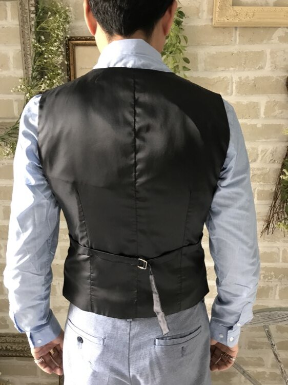 ブラック(黒)の細かな格子柄のオールシーズン向けのベス。このベストは単品の展開です。ネイビー、グレー、ホワイト、ブラックなど無地のジャケットや、パンツはホワイトデニムや、グレー、ブラック、ネイビーの無地パンツでも合わせやすい万能なチェックベストです。また合わせるシャツをデニム素材、細かなドット柄、ネイビー、ライトブルー、ライトグレーシャツで合わせてカジュアルな二次会タキシードとしても素敵。また白のウィングカラーシャツを合わせればきちんとした結婚式や披露宴向けのフォーマルなコーディネートになります。披露宴・結婚式・ゲスト結婚式の参列向け。パーティースーツ・二次会・海外ウェディング・フォトウェディング、前撮りにまで幅広いシーンでご使用いただけます。オールシーズンに適してます。