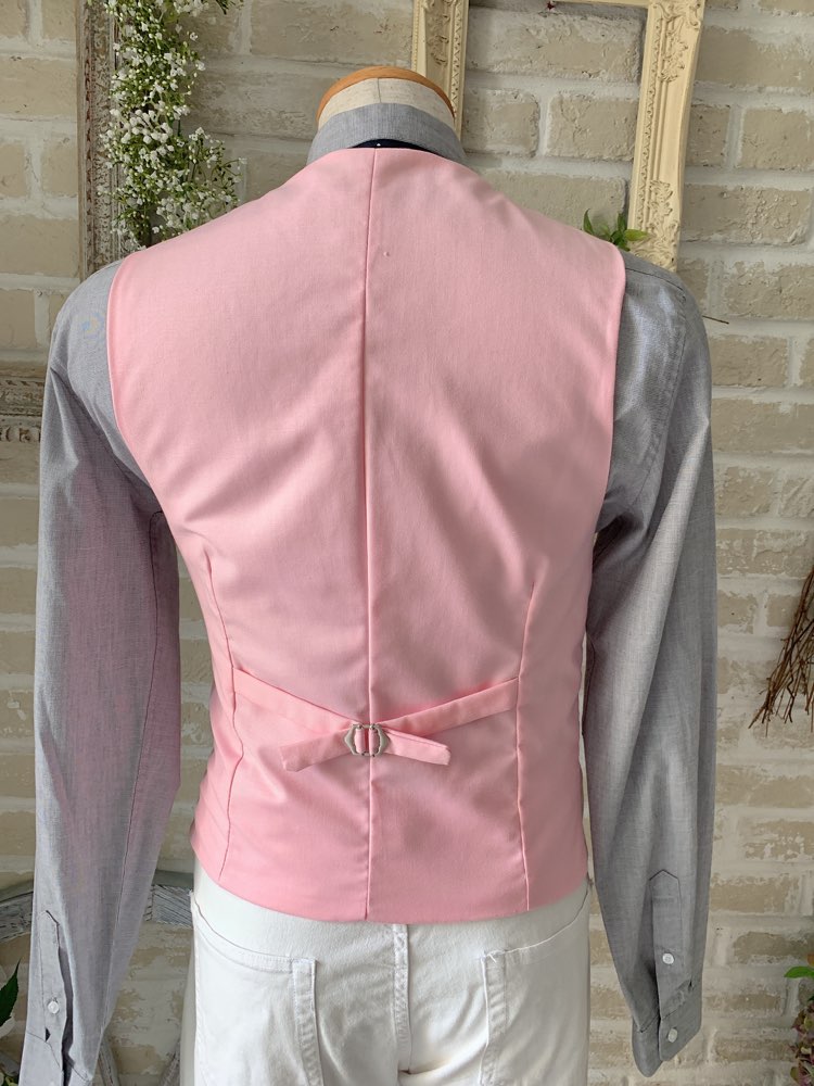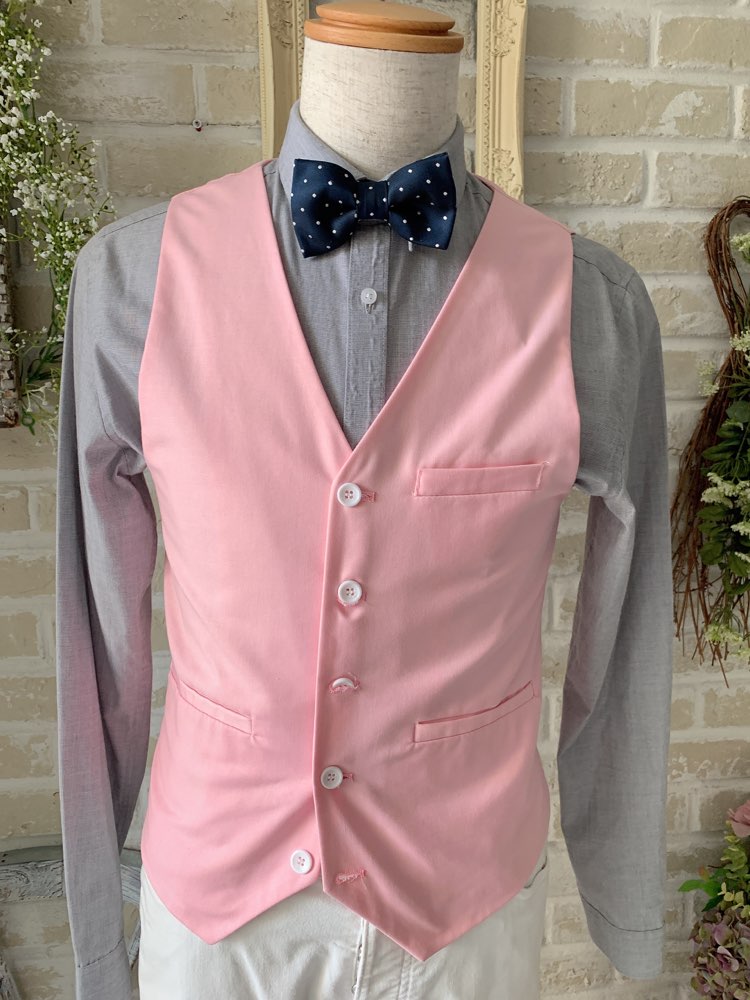ピンク無地の綿素材のオールシーズン向けベスト。このベストは単品の展開です。ホワイト、ブラウン、ベージュ、グレー、ホワイト、ブラックなど無地のジャケットや、パンツはホワイトデニムや、グレー、ブラック、ネイビーの無地パンツでも合わせやすい万能なチェックベストです。また合わせるシャツをデニム素材、細かなドット柄、ネイビー、ライトブルー、ライトグレーシャツで合わせてカジュアルな二次会タキシードとしても素敵。また白のウィングカラーシャツを合わせればきちんとした結婚式や披露宴向けのフォーマルなコーディネートになります。披露宴・結婚式・ゲスト結婚式の参列向け。パーティースーツ・二次会・海外ウェディング・フォトウェディング、前撮りにまで幅広いシーンでご使用いただけます。オールシーズンに適してます
