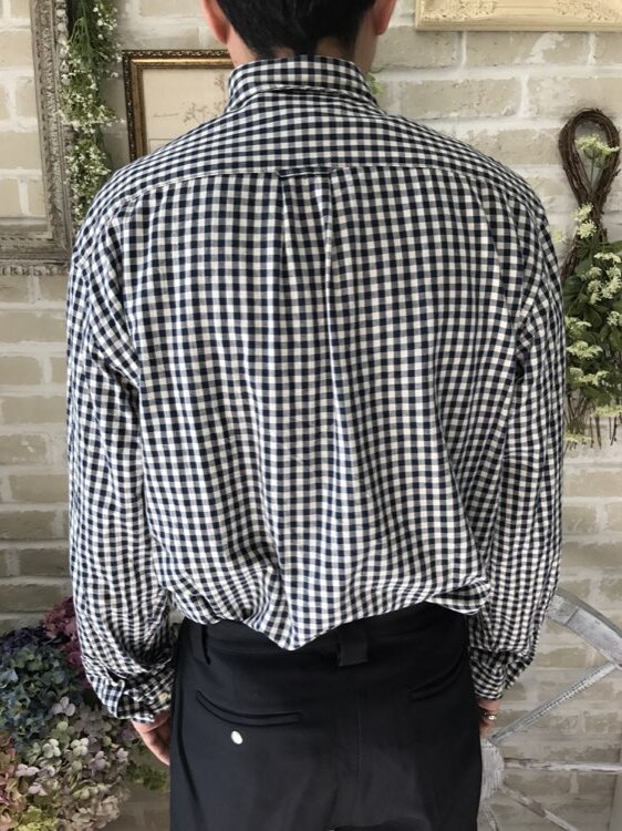 濃いめネイビー×ホワイトのギンガムチェック柄でコットンの長袖シャツ。ボタンダウンカラーで、フロントはクラシカルなスタイル。左胸にポケットあり。ネイビー、グレー、ホワイト、グリーン、ブラウン、ベージュ、ブラックの無地のタキシードやジャケットと相性良いです。裾はラウンドカット。レギュラーフィット―動きやすいゆとりがあり、ウエスト部分をゆるやかに絞ったクラシックなフィット。着心地のよいテーラードシルエットを創り出します。