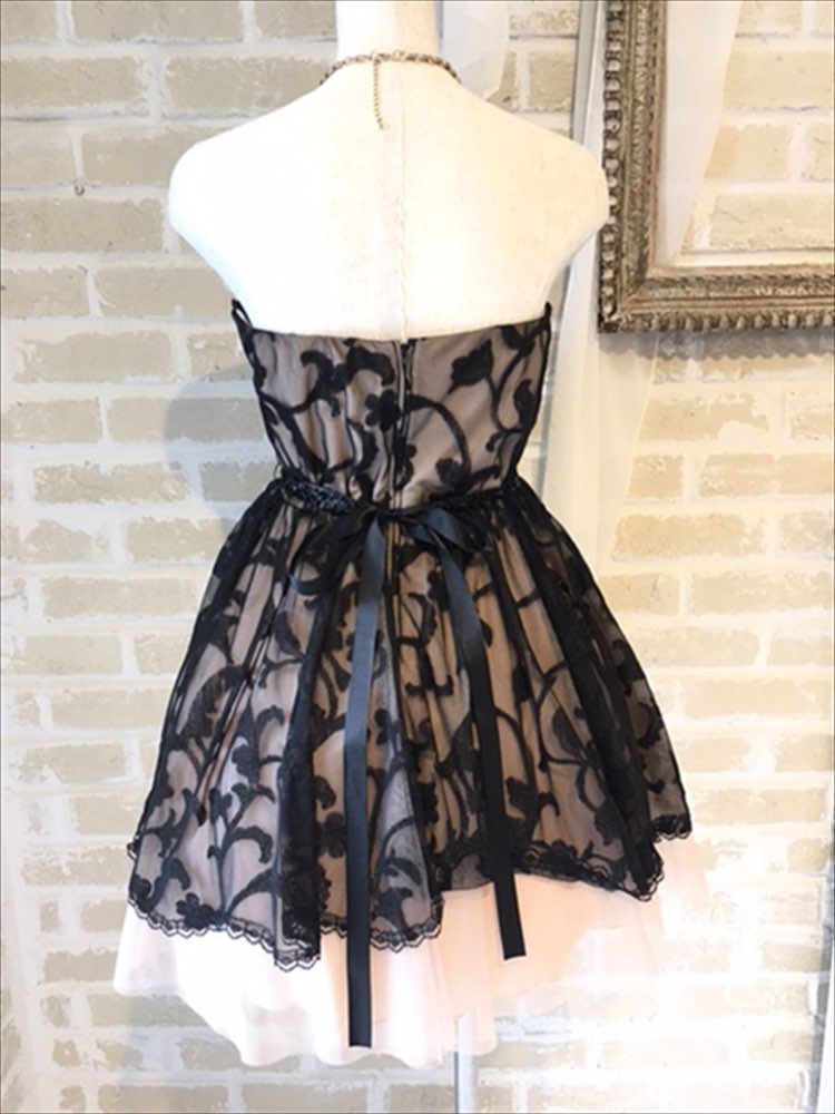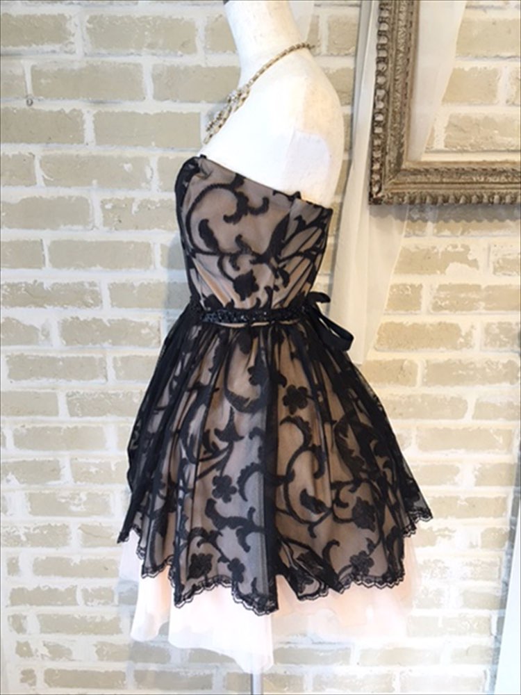 ベージョ×ブラックの大きなツタ柄がとても珍しく印象的なミニドレスです。花柄が大柄なので子供っぽくはなりすぎない大人かわいいドレスです。胸下切り替えなので脚長効果、着痩せ効果も期待できます。パニエを入れるとよりふわっとして華やかになりますよ。絶対に他の方とは被りたくない個性派さんにおすすめ。ミニ丈なので結婚式二次会や謝恩会パーティーにオススメです
