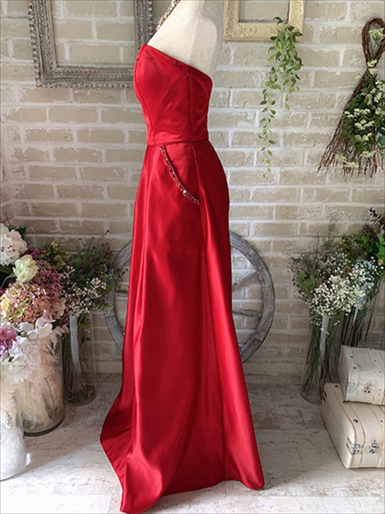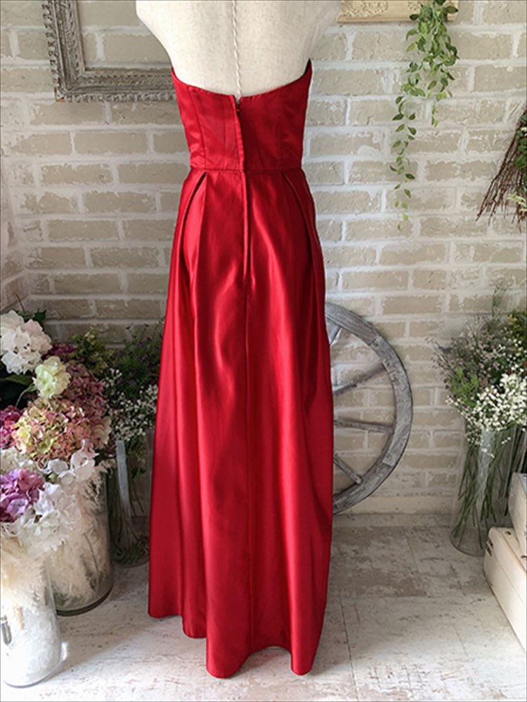 光沢感のある生地が一際上品な印象のロングドレス。フロントがストレートなタイプなので、ベアドレスに抵抗のある方にも比較的安心して着ていただけるかと思います。左右のポケットはフェイクではないので実用性も抜群です◎ 1枚で誰でもおしゃれを楽しめる魅力的なドレスです! ブラックの小物で大人可愛くも、アイボリー系の小物でフェミニンに甘さをプラスしてもGOOD。 クルージングなどのパーティーシーンにはもちろん、演奏会等にもお勧めです♪