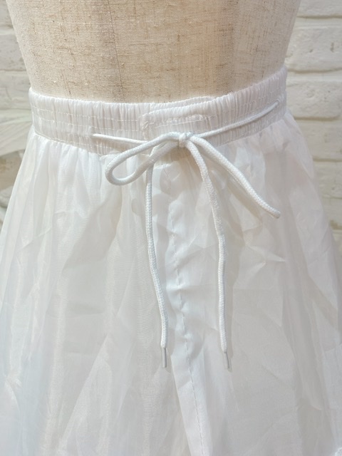 紐が通して有りますので更にご自分のウエストにフィットします。 ワイヤーが重なっている部分を留具内で調整して広がりを調整できます。 ワイヤーを8の字にねじって重ね合わせるとコンパクトに収納可能です。