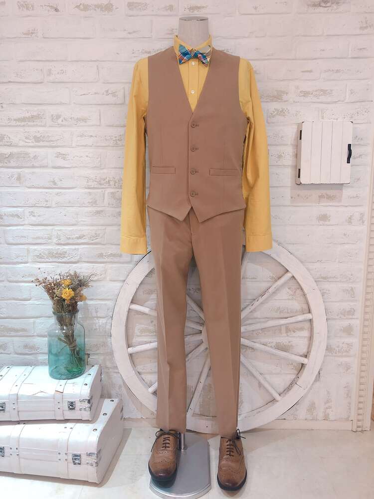 38 キャメル フランネル無地ベスト M