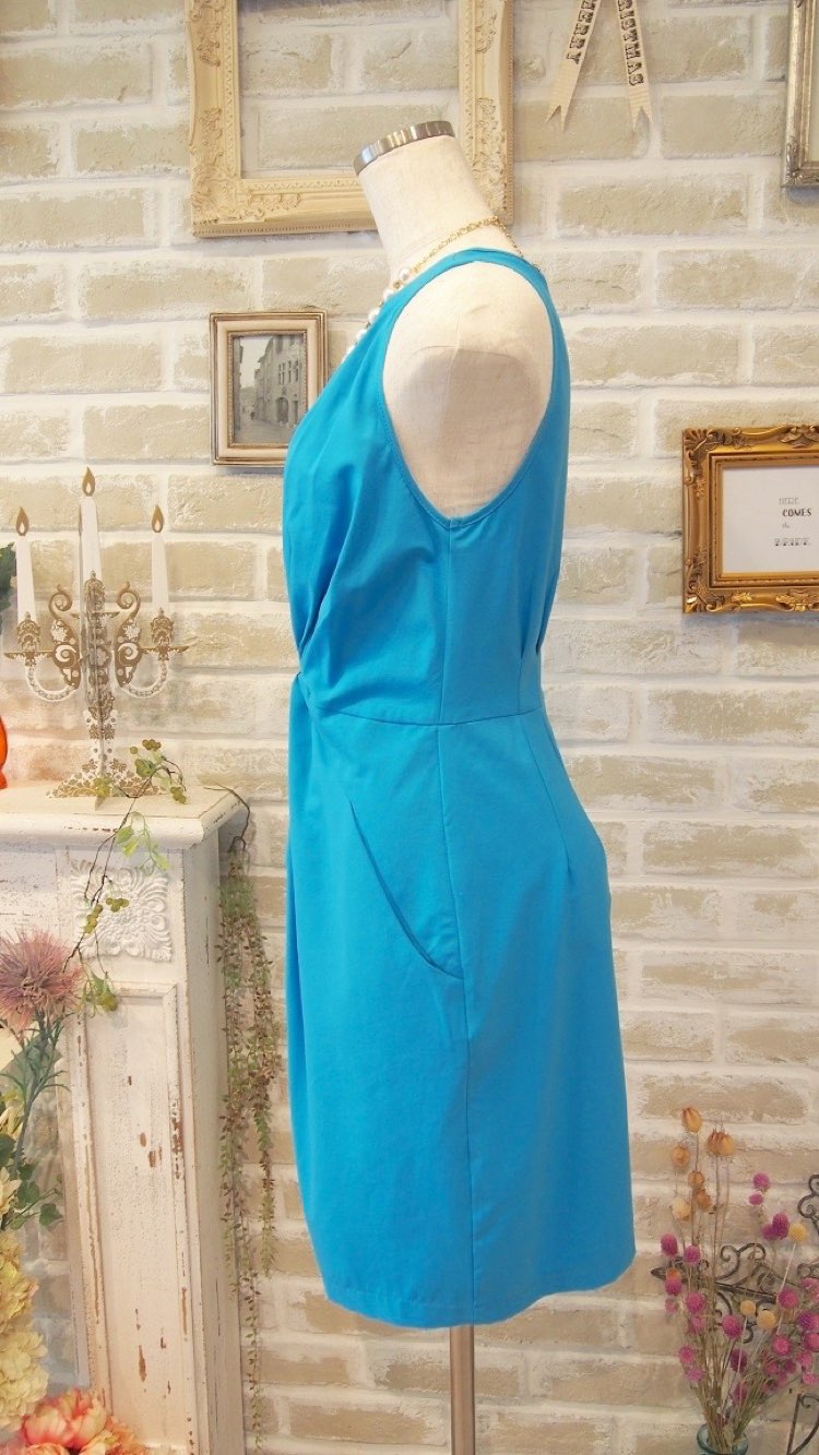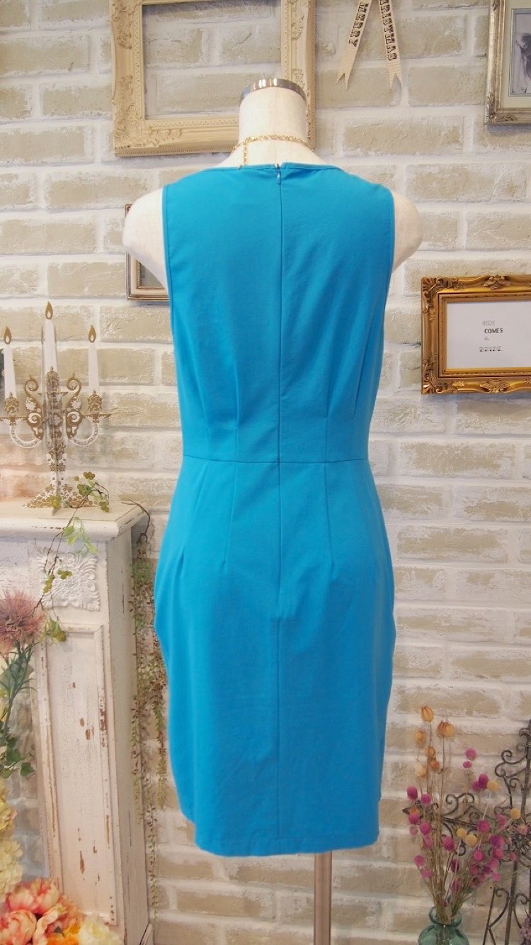 夏らしい明るいブルーのカジュアルドレス。素材感もさらっとして薄手なので、見た目も着心地も爽やかです。春夏は結婚式のゲストでもご利用いただけますが、女子会・レストランウエディングなどのシーンで活躍してくれる少しカジュアルなデザインです。とてもシンプルなシルエットですので、可愛すぎることも、エレガントすぎることもなく、年齢問わず色んな着こなしができるのがこのドレスの魅力です。スリムなシルエットのドレスを着てみたいけれど、ボディラインが出るのが気になる方・フィット感が苦手な方にも安心して着用いただけます。明るいカラーが着たくなる暑い季節にぴったりです。