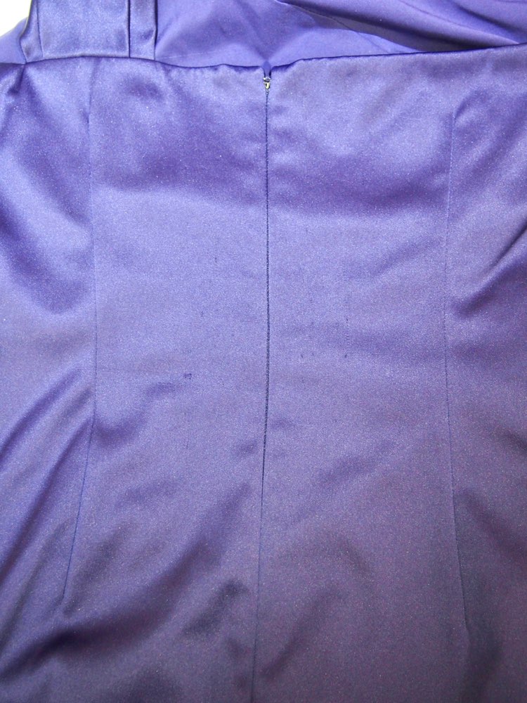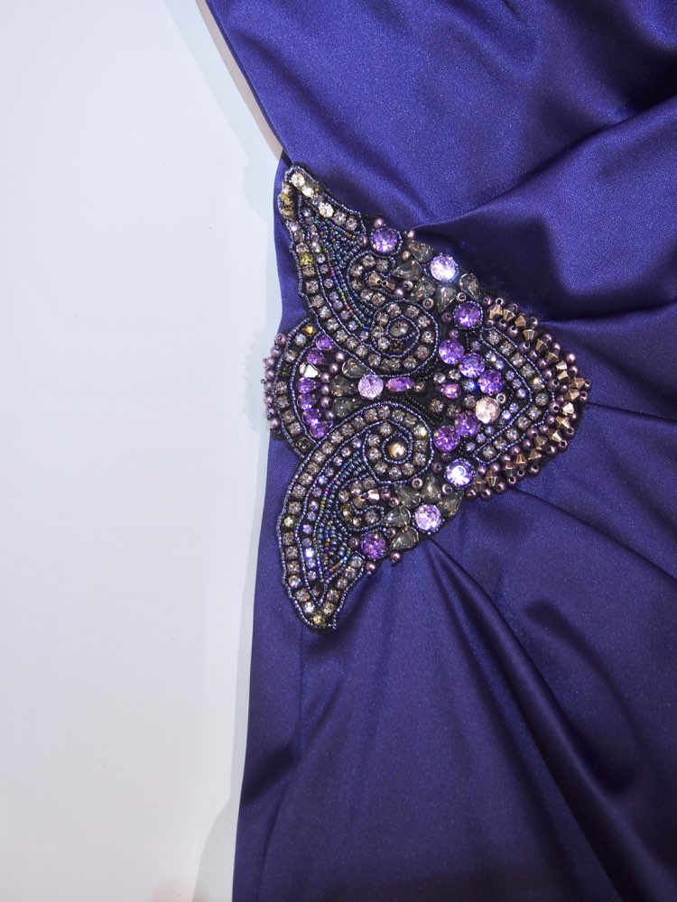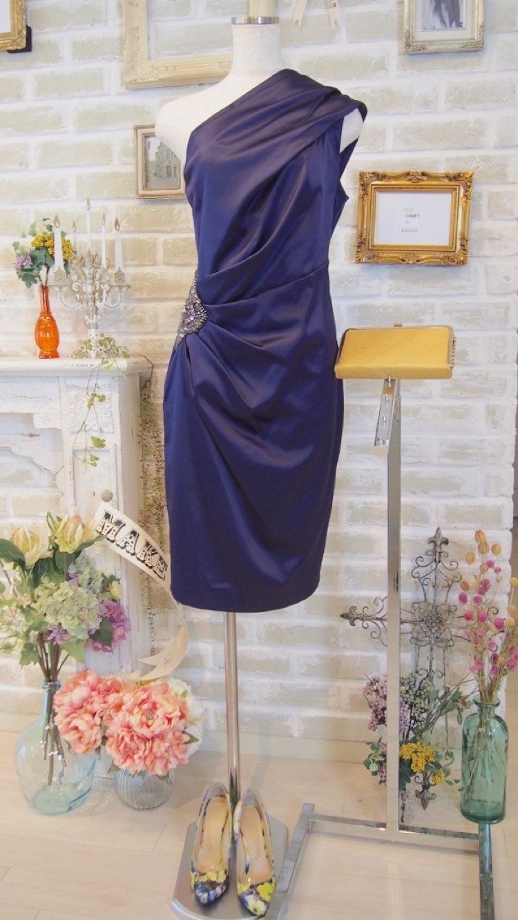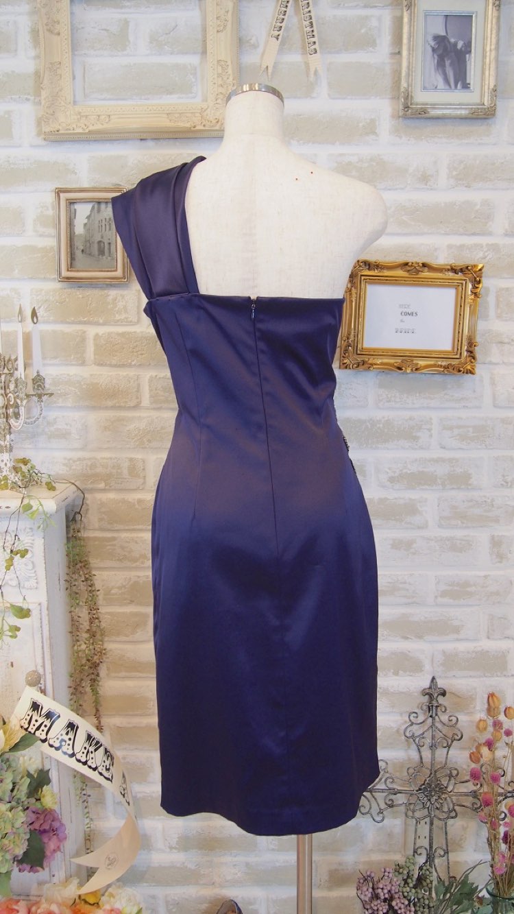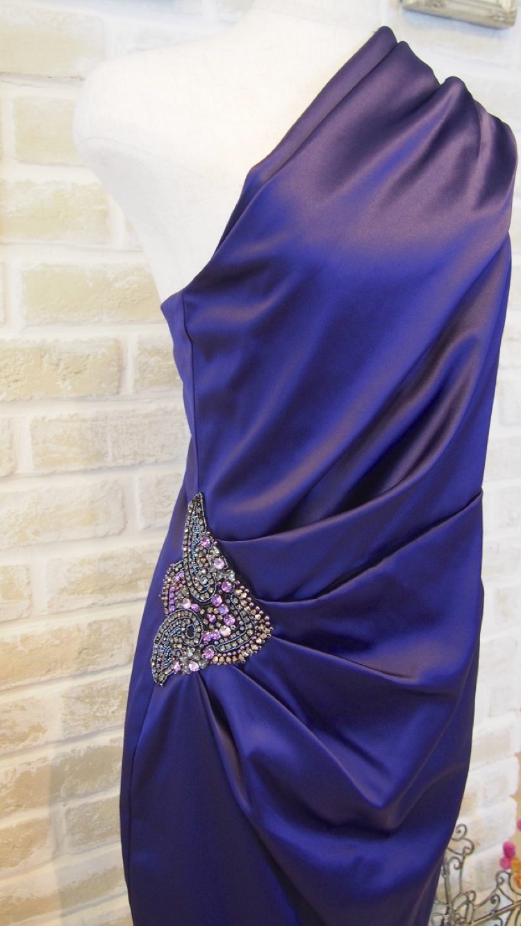 Eliza Jは、エレガントなドレスを豊富に展開するNYブランド。光沢のあるパープルネイビーのカラードレス。胸元をしっかり覆ったワンショルダーデザインに丈が長めのタイトシルエットが大人な印象のラグジュアリードレス。ウエスト右サイドに施された大きなビジューのアップリケが華やかさをプラスしてくれます。身長の高い方、上品でラグジュアリーなドレスをお探しの方にぴったりな1着。華やかなパーティーや結婚式などのゲストドレスとして、30~50代の大人の女性にぜひ。シルエットはタイトなデザインですが、比較的厚手の生地となっておりますのでインナーのラインが響く心配はありません。ストールでスッキリ華やかに、ジャケットでかっこよく、どちらのコーディネートもおすすめです。