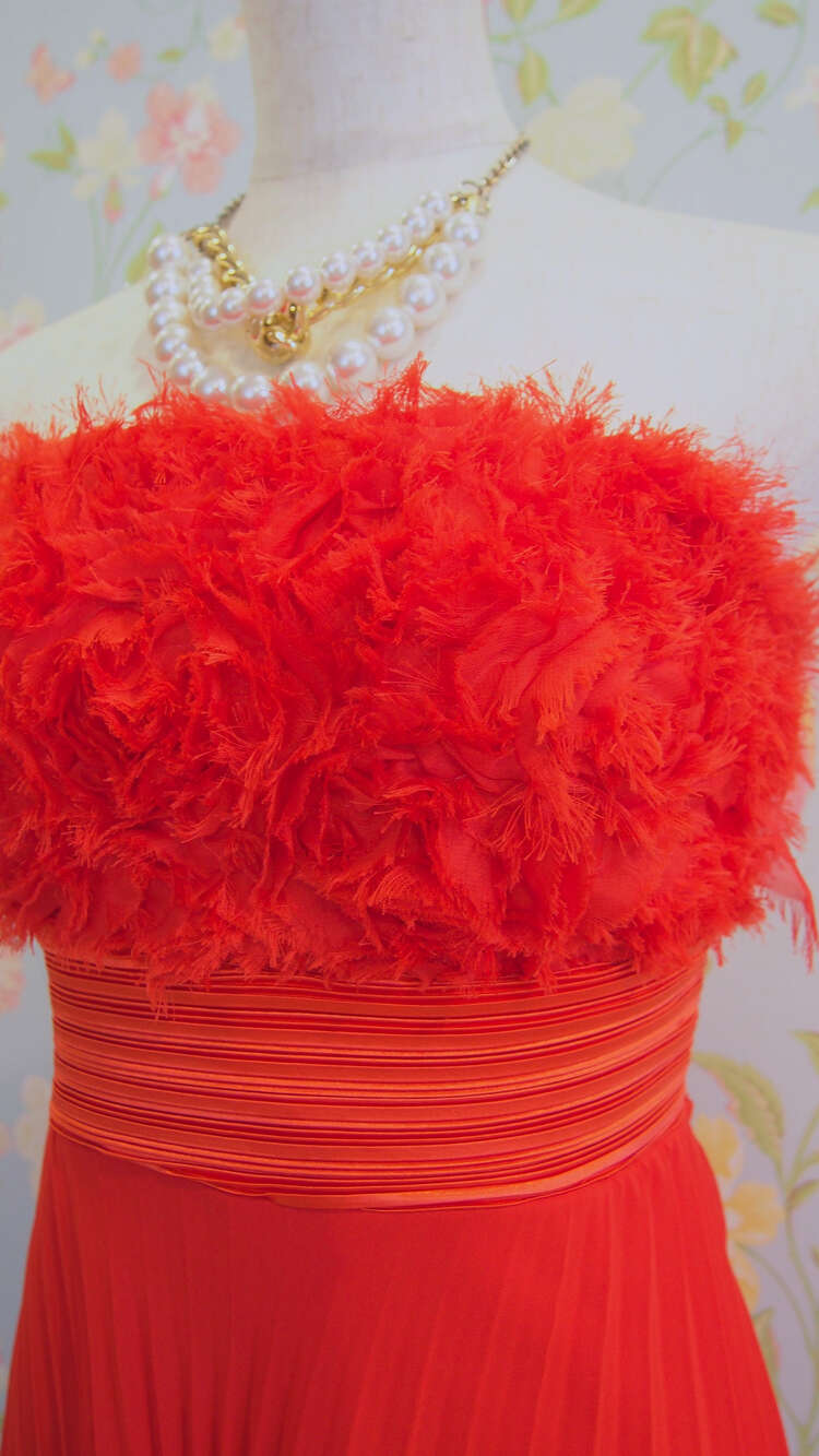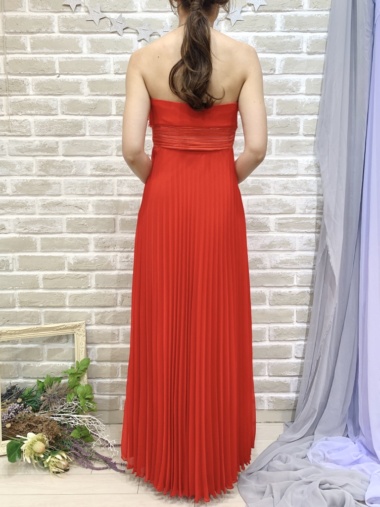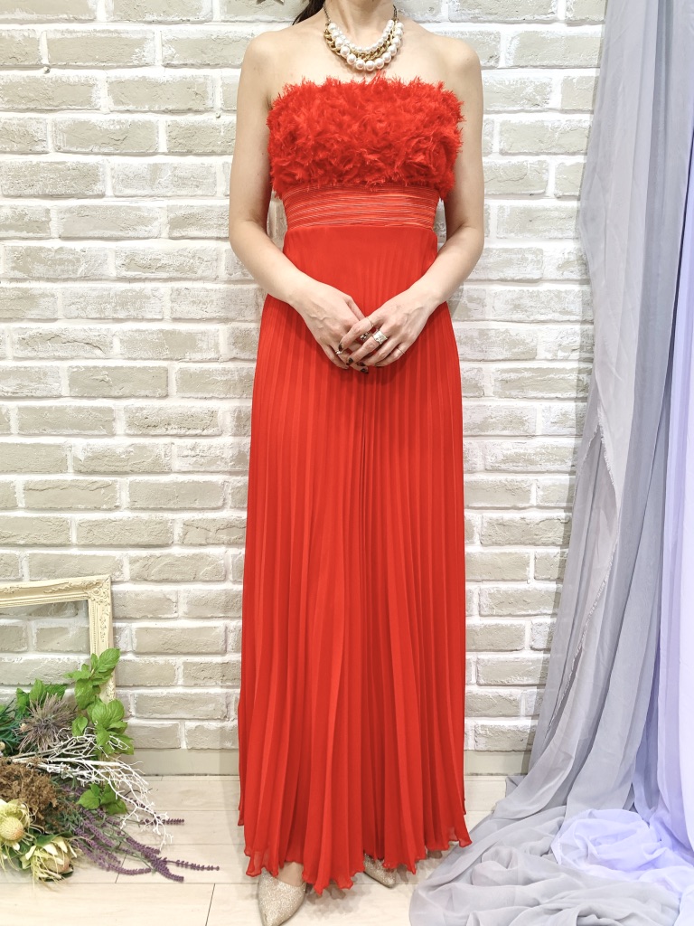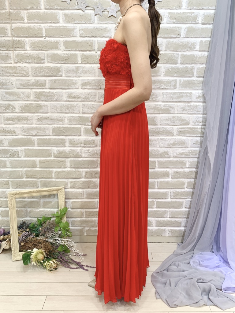 華やかさ満点のベアトップタイプロングドレス。フラワーフリルデザインが上品な中にも豪華さをプラスしてくれます。また、胸下切替のシルエットがすらっとしたスタイルアップ効果を実現してくれる夢のようなドレス。胸元が開きデコルテを見せるベアトップタイプは、女性らしさもあり顔まわりをスッキリ見せてくれます。新婦様の2次会衣装やパーティーにもぴったりの主役級ドレスです。20~40代と年齢層も幅広くご利用いただけます。とても華やかなパーティースタイルをお楽しみください。ロングドレスは羽織なしで着こなすのが一番バランスが良く基本ですが、どうしても露出が気になる場合は透け感のあるストールでのコーディネートが野暮ったくならずおすすめです。