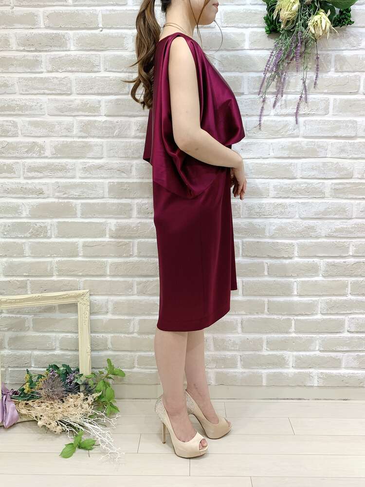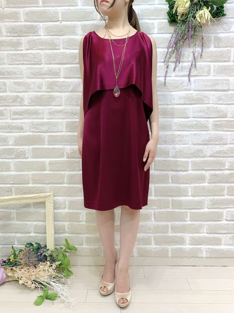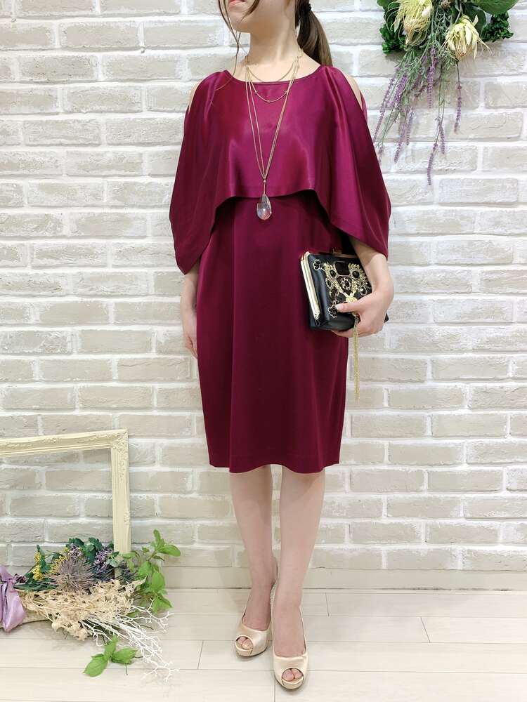 ウエストを絞らず強調しないシルエットで着やすさ抜群のシフトドレス。また、お腹周り・ヒップラインが隠れるのでボディラインを気にせず着用いただけます。シンプルなデザインだと普段着ない艶のあるパープルも挑戦しやすく、バランスよく艶やかにドレスアップ可能。結婚式のお呼ばれゲストドレスやおパーティーやお食事など、多様なシーンで活躍してくれるデザインです。比較的安心感のある丈は、20~4、50代と幅広い年代におすすめ。シフトドレスに羽織をプラスする場合は、ストールでのコーディネートがドレスのイメージの邪魔をせずカッコ良く仕上がります。