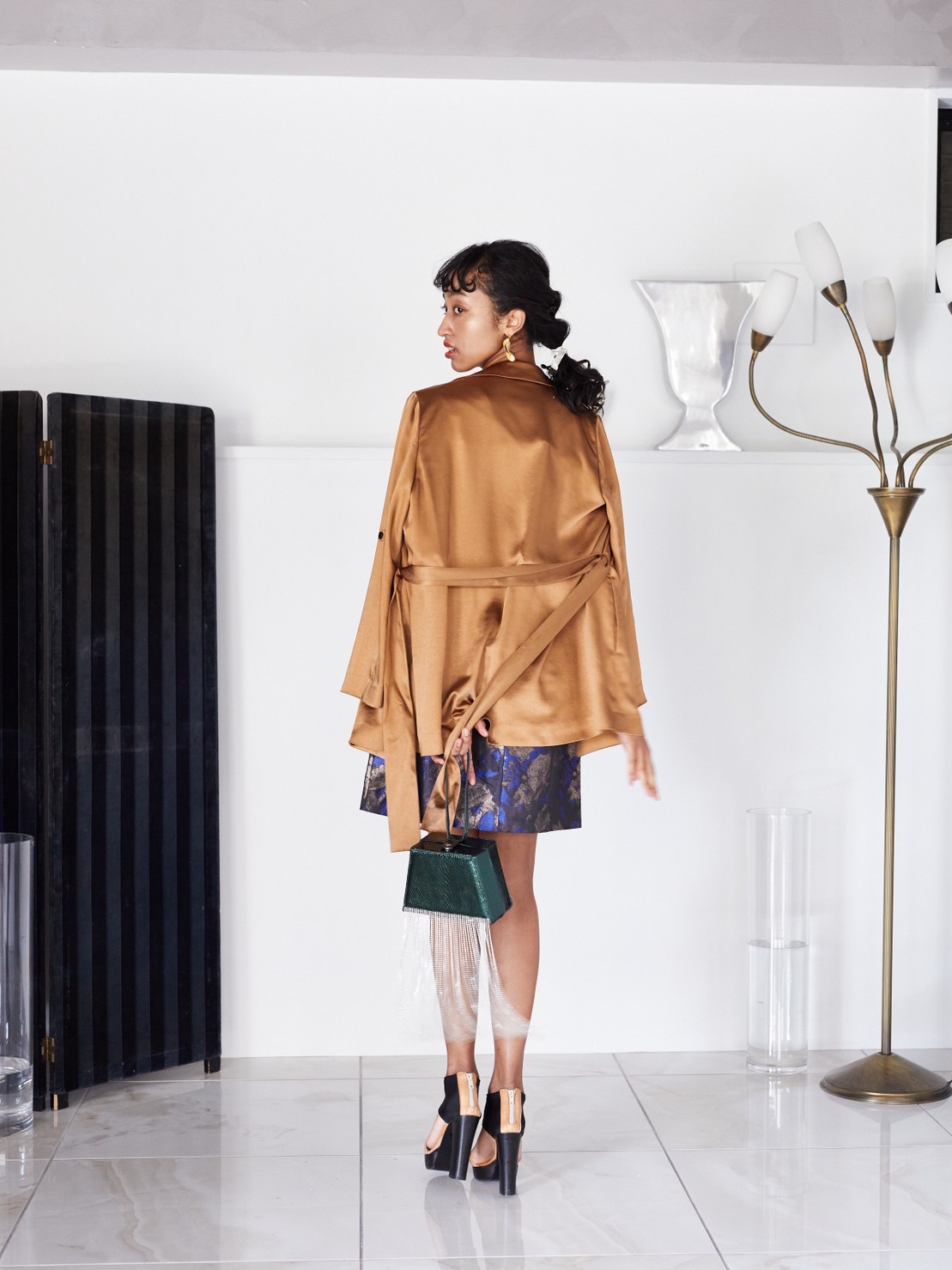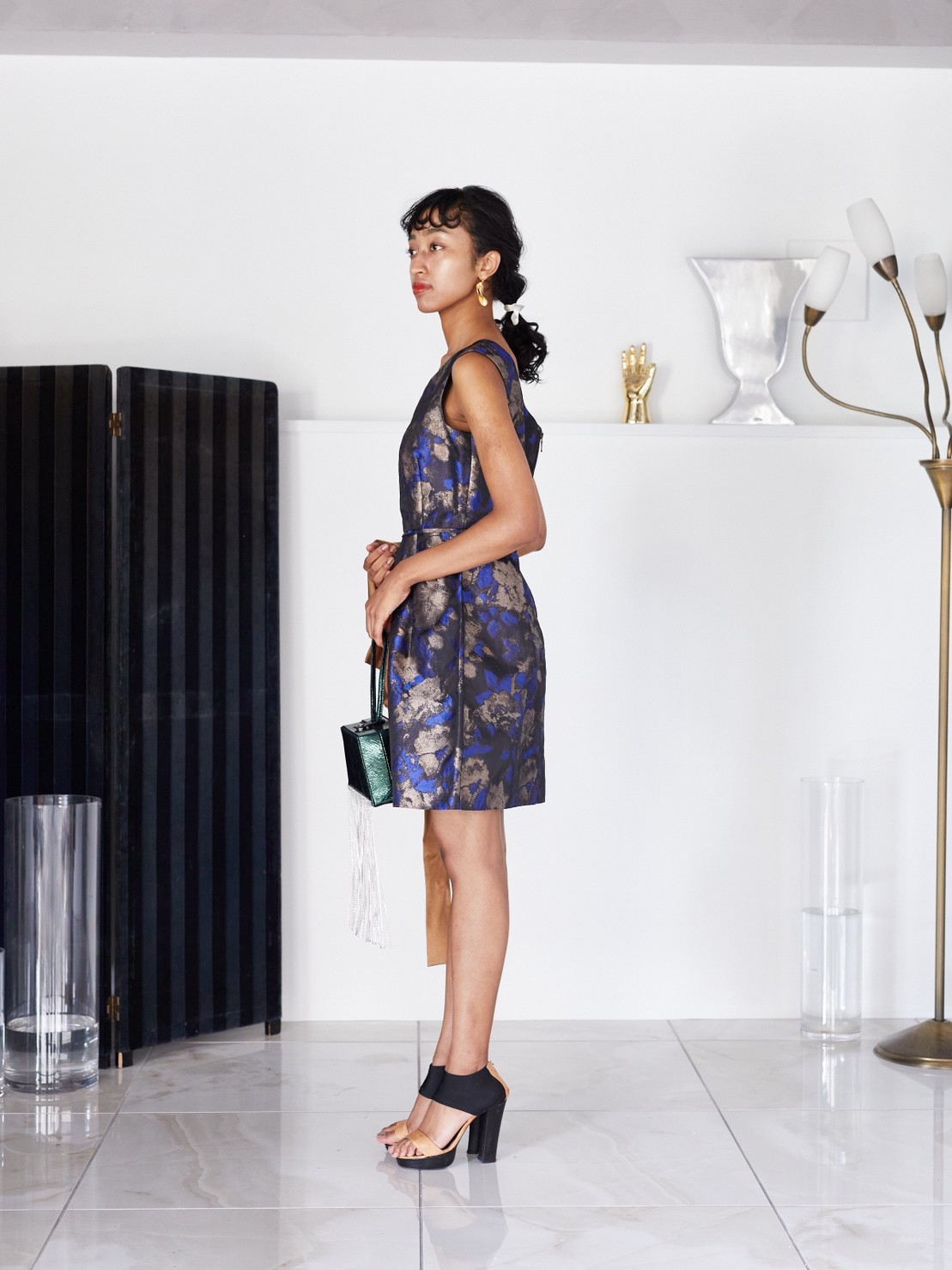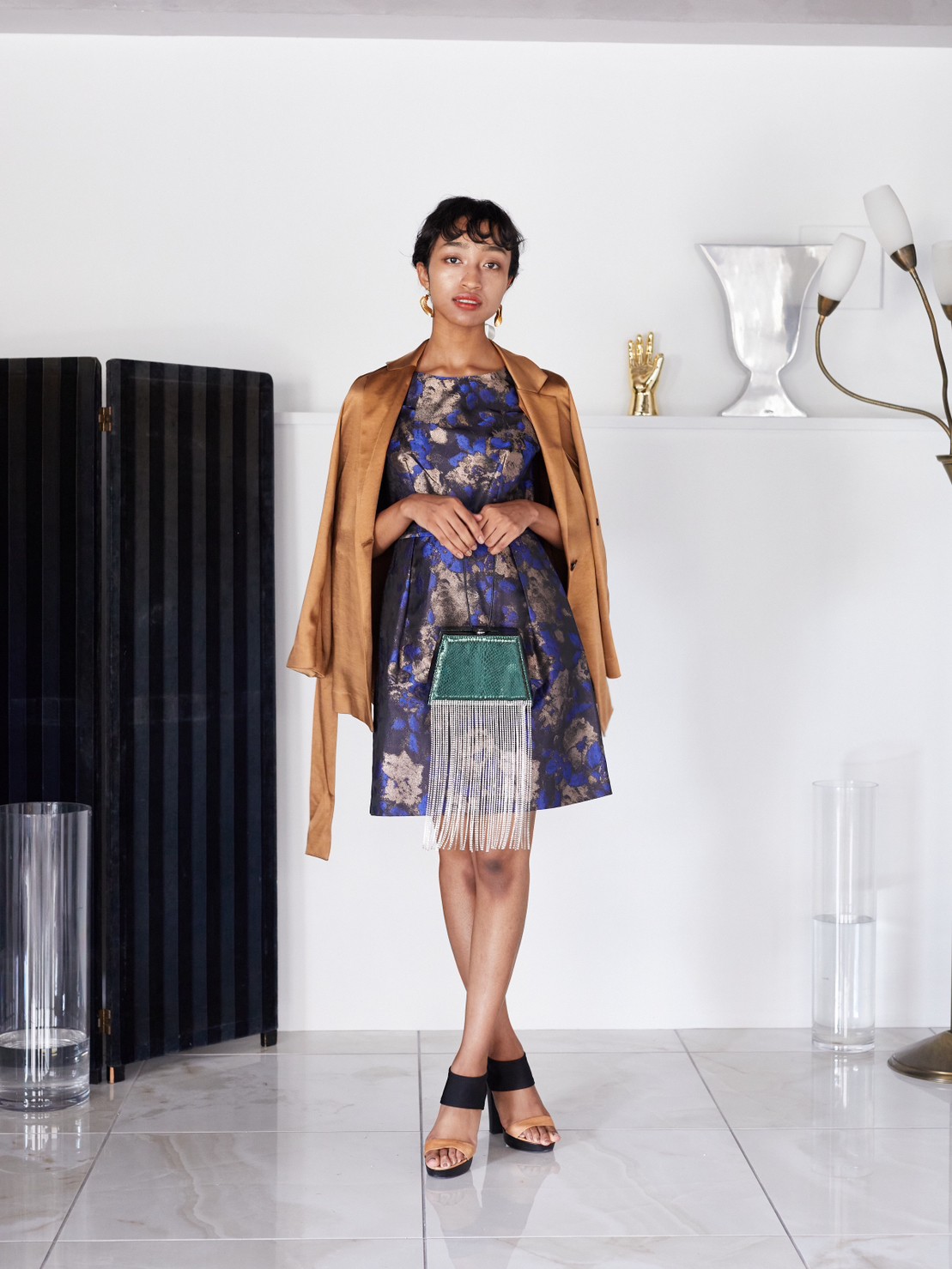 『周りと被りたくない!』『少し個性的なデザインが好き!』そんな方におすすめしたいドレス。複数のカラーが混ざり合ったジャガード生地が目を惹く海外ブランドならではのデザイン。程よい華やかさはありつつも全体のカラーやシルエットはやりすぎ感がなく、決して”奇抜”ではない”一味違う”雰囲気の個性派。華やかさが出る生地といえばレースが主流ですがジャガード生地もイチオシです。ご利用シーンに合わせて羽織やパールなどのアクセサリーを足せば、結婚式からカジュアルなパーティーまで大活躍。小物はやりすぎずポイントを絞るとこなれ感も狙えます。購入するとなると定番カラーになりがち。レンタルだから手を出せるコーディネートはいかがですか?