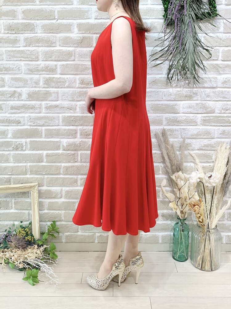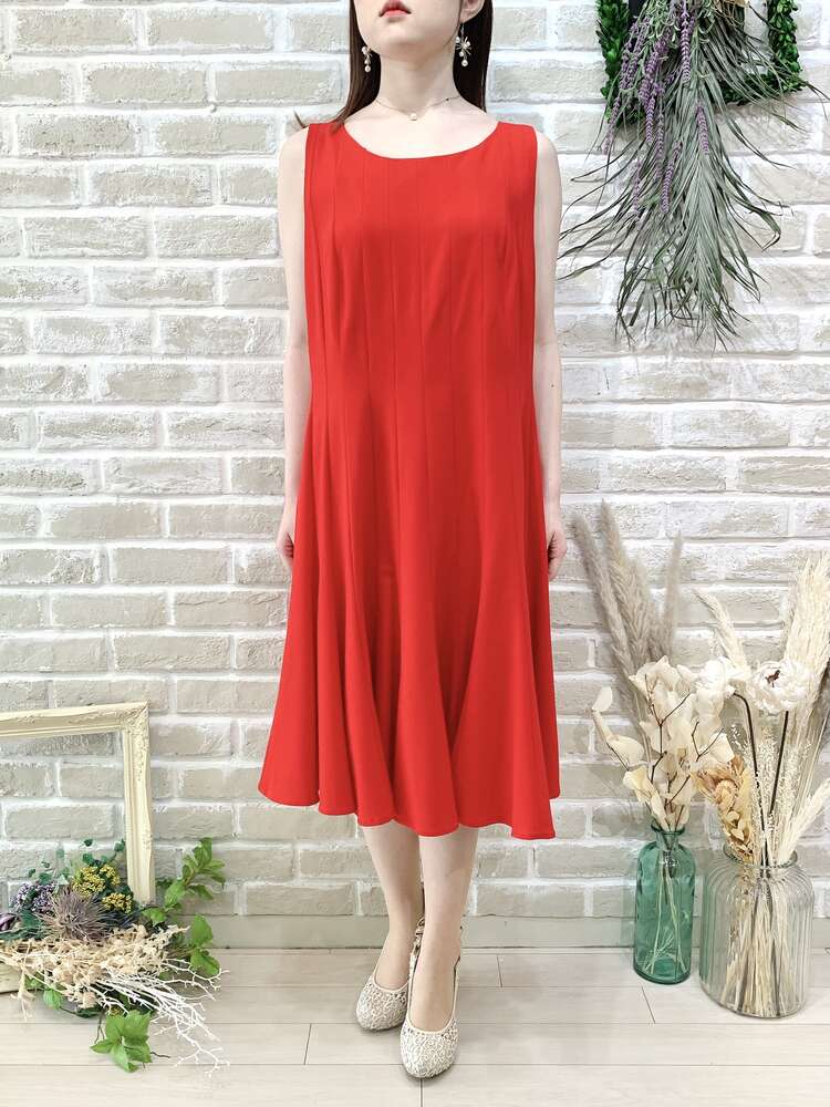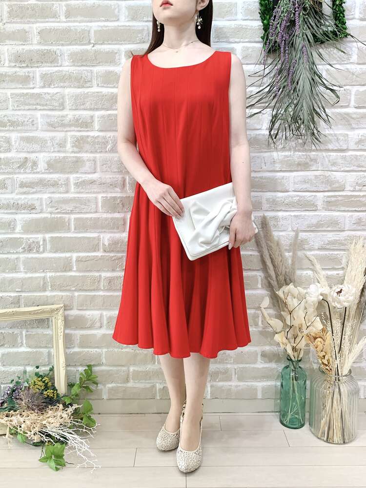 ミディアム丈のフィット&フレアノースリーブドレス。クラシカルなシルエットが上品で女性らしい印象。長めの丈のドレスは年々人気が上昇中。当店にも上品な丈感のドレスが続々入荷中。ウエストから広がるAラインが程よい華やかさを演出してくれるので、結婚式のゲストドレス・パーティー・食事会など様々なシーンで活躍してくれるドレスです。可愛いだけじゃなく大人っぽさ・女性らしさも欲しい、そんな方におすすめです。合わせる小物次第でコーディネートも自由自在。ぜひ自分好みのテイストで着こなしてみてください。