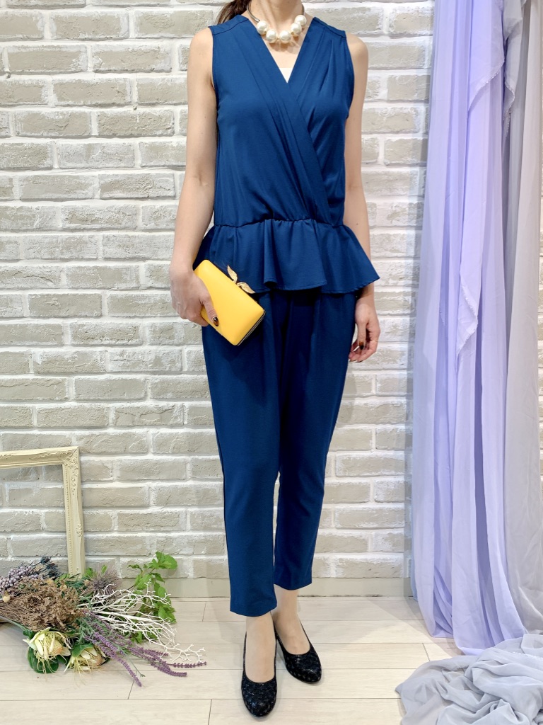 かっこいい印象にキマるジャンプスーツ。スカートタイプでは出せない大人っぽさや媚びないクールな雰囲気を楽しめます。カジュアルなパーティーやちょっとしたお食事会などにぴったり。こちらのパンツドレスは比較的丈も長めとなっておりますので、ロングドレス同様長身の方におすすめです。ウエストラインはゴム仕様で、締め付け感がなく着心地も抜群。スカートスタイルが苦手、ドレスアップスしたいけど脚を出したくない、そんな悩みをお持ちの方もパンツなら挑戦しやすいですね。シンプルなデザインなので年齢層を選ばず着用いただける1着です。羽織らないのが1番バランスが良いですが、ストールをさらっと羽織るとドレッシーなムードに。
