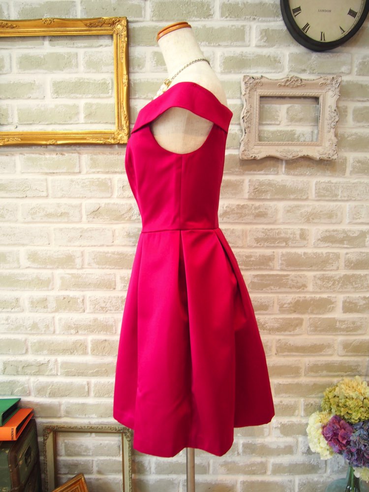 日本でもメジャーになってきたオフショルダーデザイン。コンパクトなデザインながら、濃いめのマゼンタカラーで華やかさバッチリです。華奢なデザインやスタッズ、パール、柄物、いろんな小物と相性が良く、他の小物を控えめにすると品が出て大人な雰囲気に、大ぶりのアクセサリーやカラー小物などを合わせるとインパクト大のパーティースタイルに。羽織ると、オフショルダーのデザインが隠れてしまうので、1枚で着こなせるパーティーでのご利用が1番おすすめ。また、ショルダーデザインを抜いても十分華やかなので、ボレロ等を合わせてご友人の結婚式のお呼ばれドレスにも。色とショルダーにポイントを絞ったやりすぎないデザインがこなれ感を狙える1着です。
