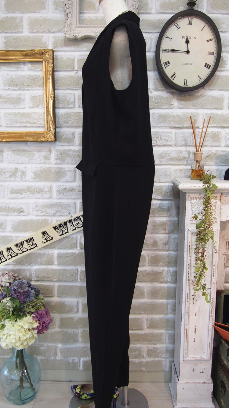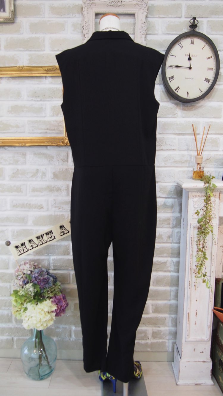 ブラックオープンカラーテーパードレッグジャンプスーツ/US8