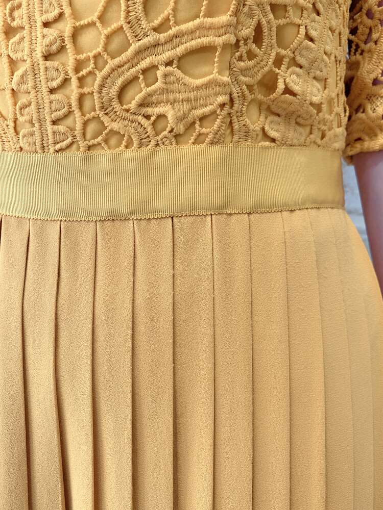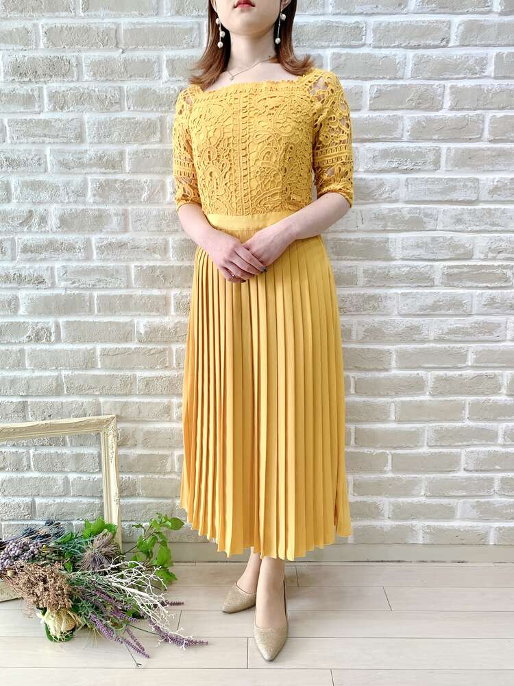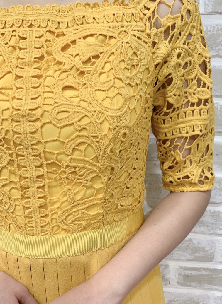 当店ではとても人気のレース生地袖ありドレス。結婚式に参列される際、ドレスにボレロやストールを羽織るのがお呼ばれスタイルとして定番ですが、年々羽織いらずの1枚で着用でき露出も抑えられたタイプが人気上昇中。野暮ったさがなくこなれ感も狙えるので、このブームはこれからも続いていく気がします。羽織で隠れることがないので、ドレス本来の雰囲気を最大限に活かすことができます。1枚でキマるデザインは、コーディネートが苦手な方にもおすすめです。また、レース生地は女性らしく華やかに見せてくれるので幅広い年齢層の方に着用いただけます。短過ぎない丈感も◎。結婚式などのオケージョンドレスとして、ちょっとしたパーティードレスとして、多様なシーンで活躍してくれる1着です。
