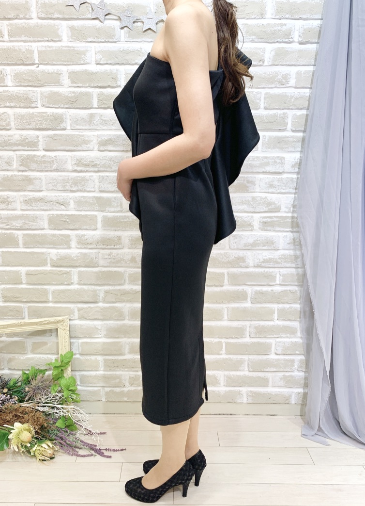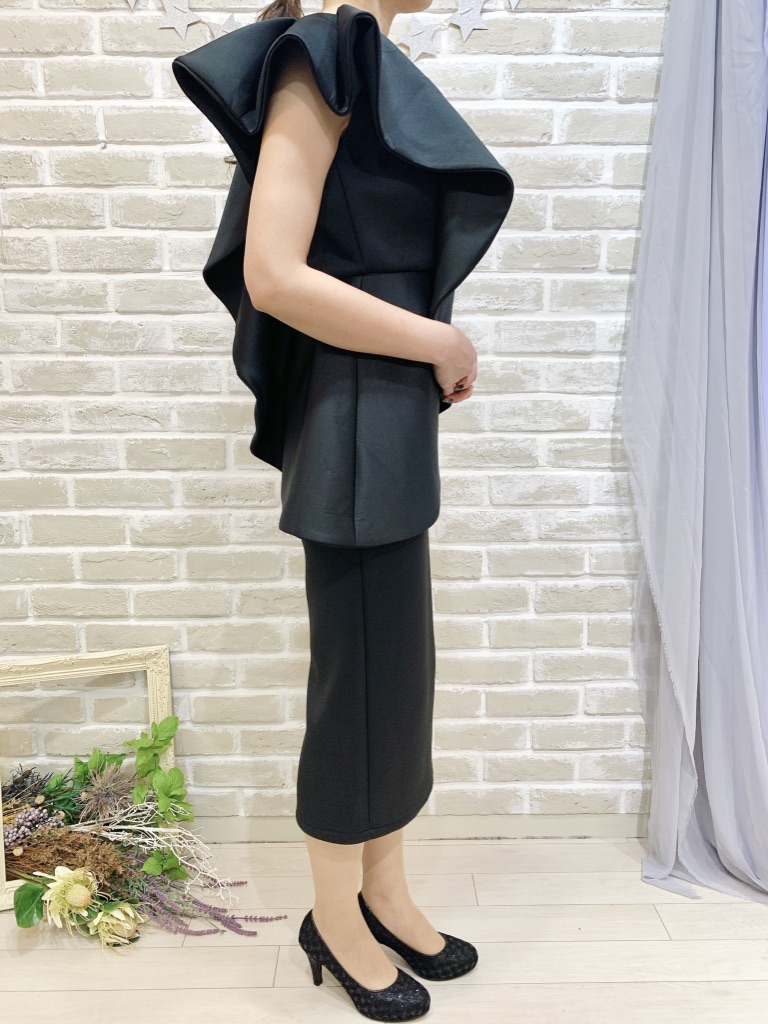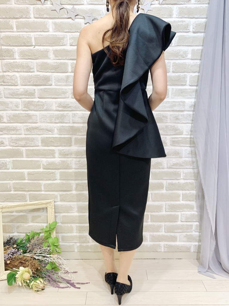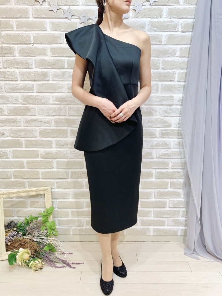 スタイリッシュでモダンなスタイルを演出してくれるワンショルダーデザインドレス。大きなラッフルのワンショルダーに潔いシンプルなブラック、ボディラインを生かすカーヴィーなシルエットで、大人の雰囲気を最上級に格上げしてくれるとっておきのドレスです。さらに、ここ数年チラホラ見るボンディング生地は、バッチリトレンド感も備えたスタイルに。カジュアルなパーティードレスや、羽織を羽織って結婚式のゲストドレスにもおすすめ。年齢層も幅広く、20~50代のクールで大人の雰囲気を活かしたスタイルに挑戦してみたい方にぜひ。ワンショルダードレスはドレスサイズに関わらず、バスト・身幅のサイズによって胸元の開き具合が変わります。ドレスサイズをご参照ください。