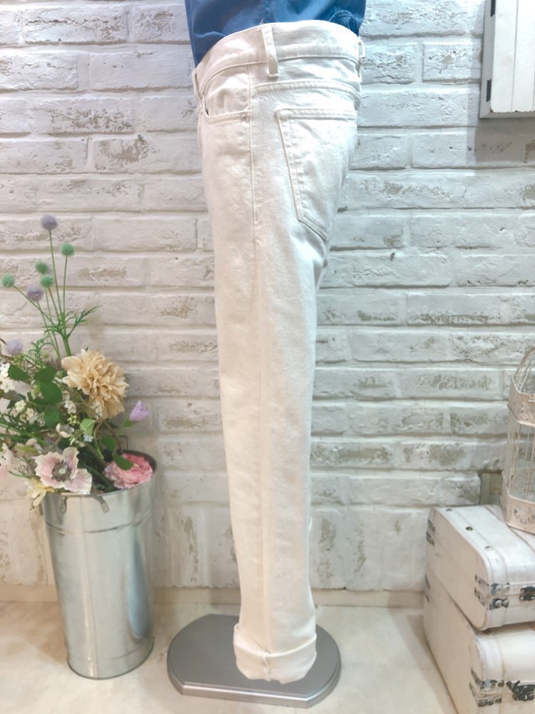 ホワイトデニムのシンプルパンツ。トップスには、柄やカラーのシャツや、ベストなど合わせるとより一層おしゃれなカジュアルタキシードコーディネートになります。二次会や1.5次会、ビーチウェディング、レストランウェディング、ガーデンウェディング、様々なシーンでご利用頂けます。また、カジュアルスタイルの前撮り写真撮影にもおすすめ致します。柔らかな素材感なので長時間着ていても負担は少ないと思います。
