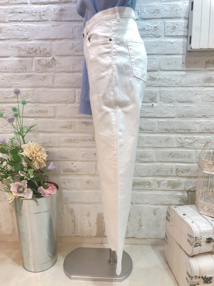ホワイトデニムのシンプルパンツ。トップスには、柄やカラーのシャツや、ベストなど合わせるとより一層おしゃれなカジュアルタキシードコーディネートになります。二次会や1.5次会、ビーチウェディング、レストランウェディング、ガーデンウェディング、様々なシーンでご利用頂けます。また、カジュアルスタイルの前撮り写真撮影にもおすすめ致します。柔らかな素材感なので長時間着ていても負担は少ないと思います。