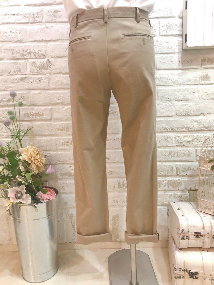 チノパンのカジュアルパンツ。トップスには、カラーや柄のシャツや、ベストなど合わせるとより一層おしゃれなカジュアルタキシードコーディネートになります。二次会や1.5次会、ビーチウェディング、レストランウェディング、ガーデンウェディング、様々なシーンでご利用頂けます。また、カジュアルスタイルの前撮り写真撮影にもおすすめ致します。柔らかな素材感なので長時間着ていても負担は少ないと思います。
