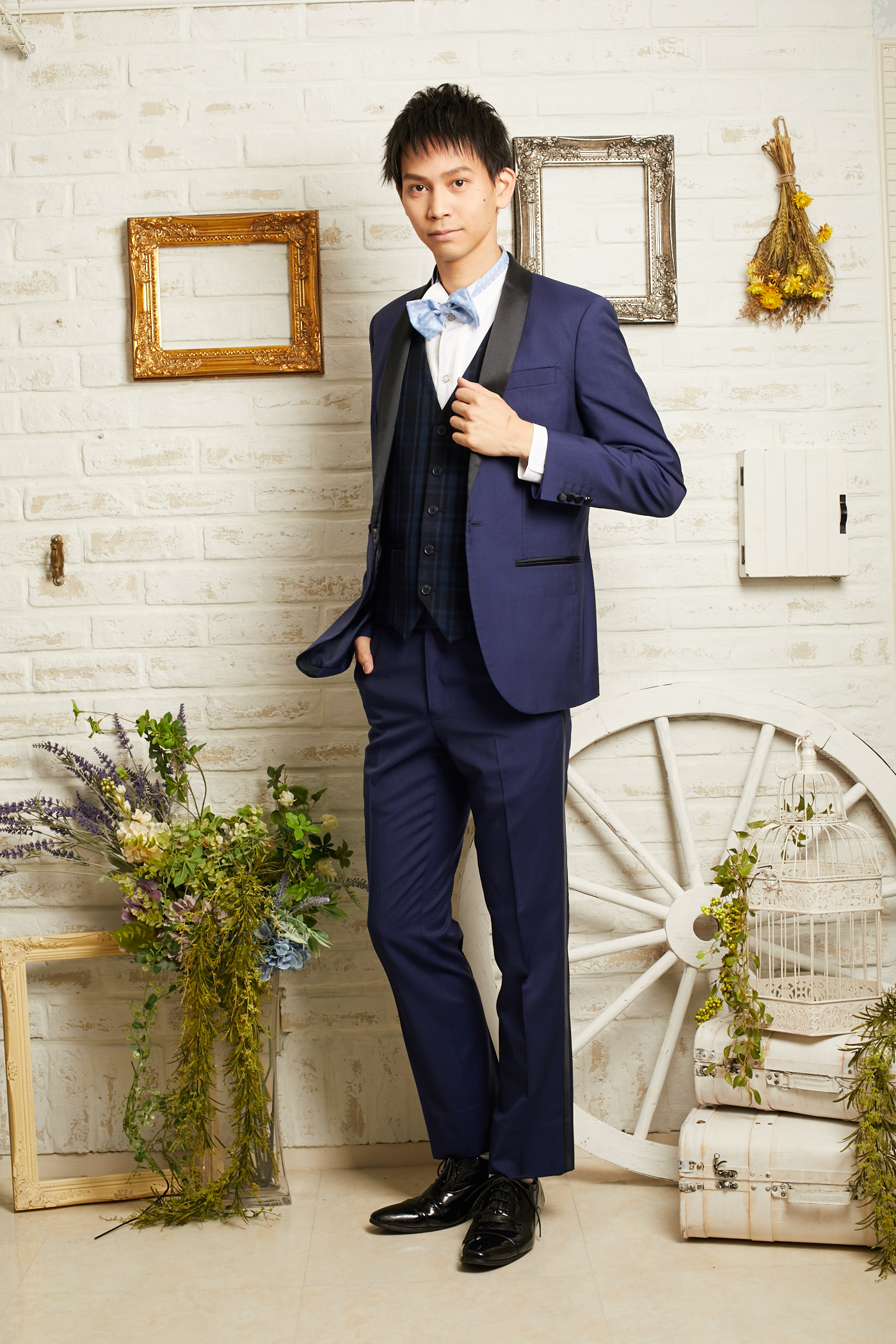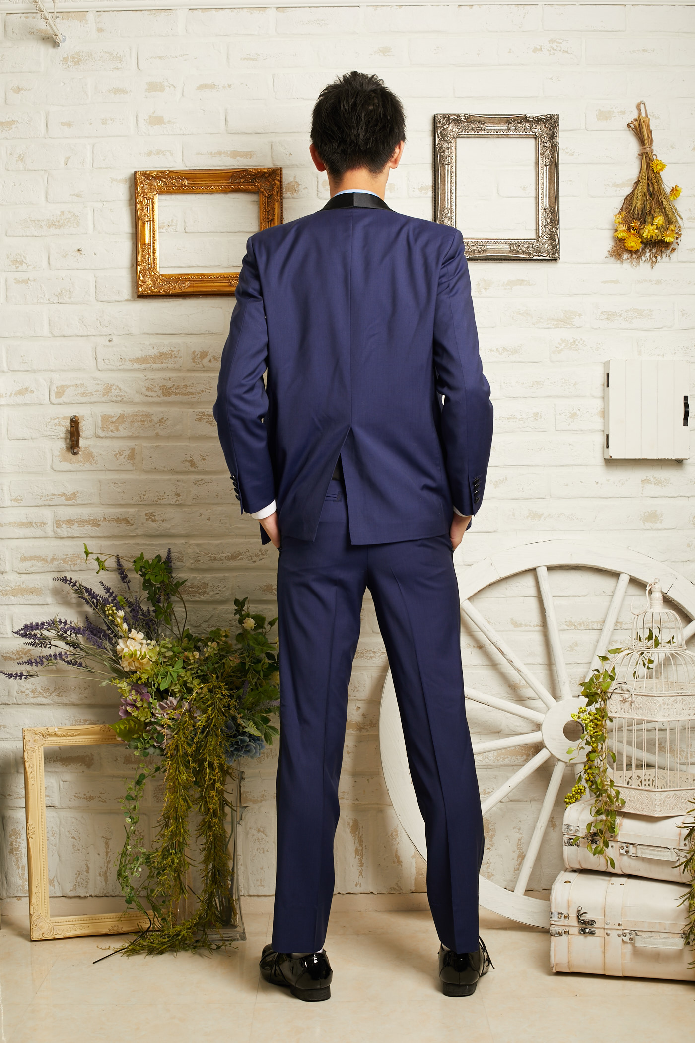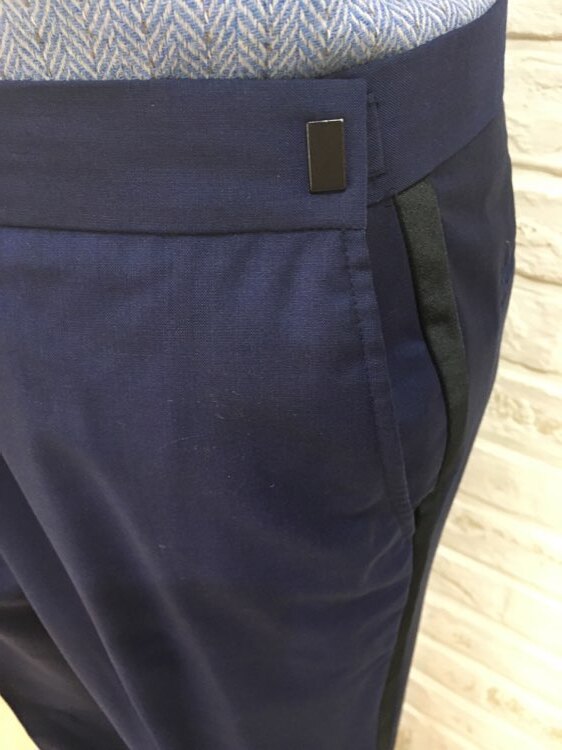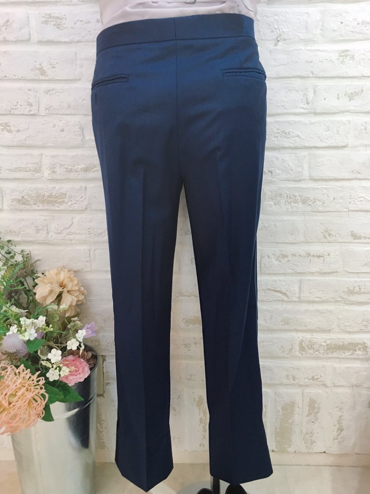 ライトネイビーのパンツはマットな仕上がりで、とても上品な素材です。セットのジャケットと合わせれば暗めな色味でも華やかな印象になります。挙式などにもお使い頂けるデザインとなっておりますので、前撮り写真撮影にもおすすめです。生地感はそれ程厚くないので、長時間着ていても負担は少ないと思います。披露宴のお色直し、二次会、1.5次会、リゾートウェディング、レストランウェディング、パーティー、様々なシーンでご利用頂けます。サイドに入ったブラックのラインがアクセントになっていてスッキリした印象に見えます。ウェストにはアジャスターがついているので、サイズ調整可能。お客様のサイズに合わせる事が出来ます。