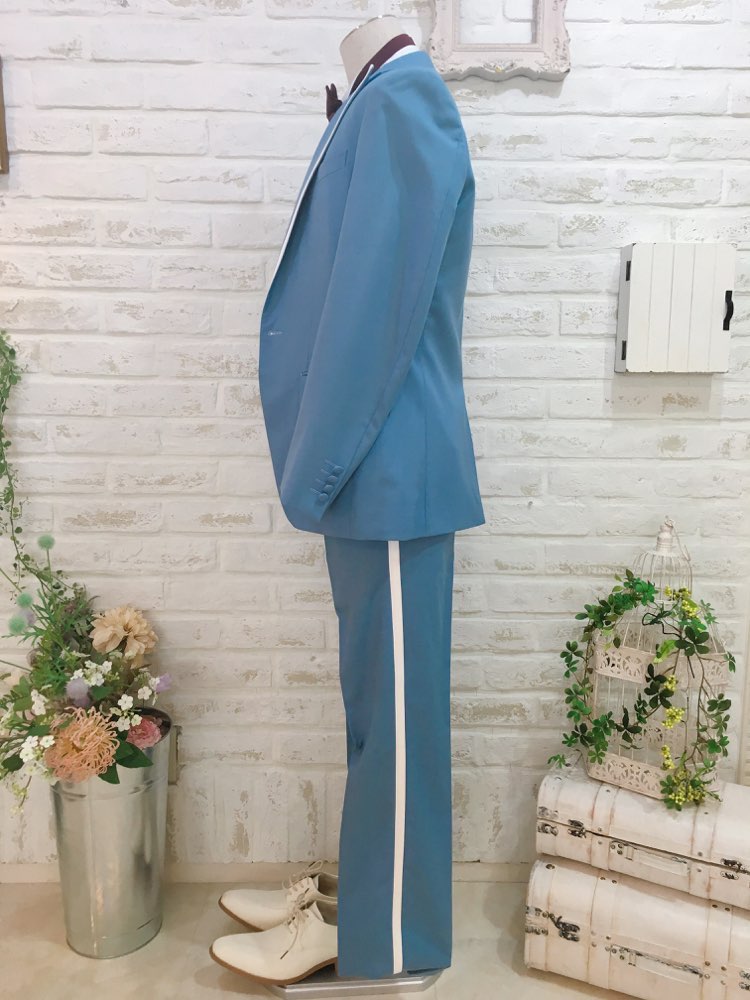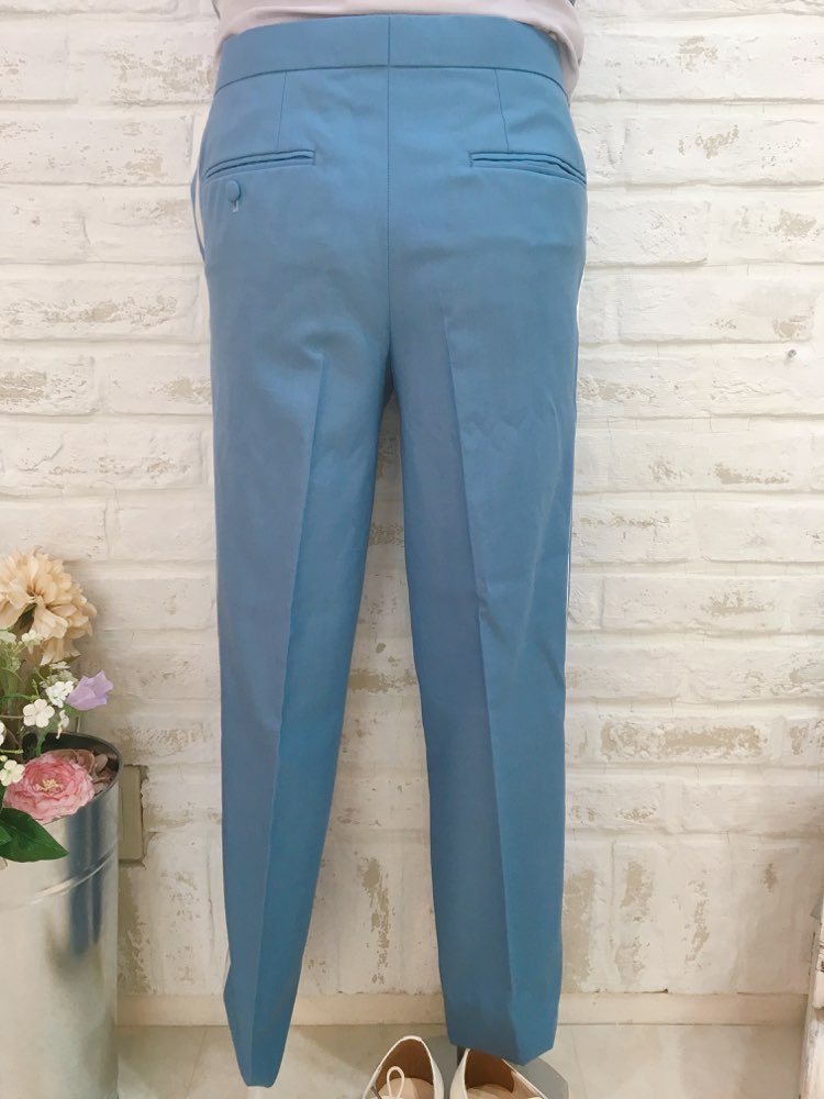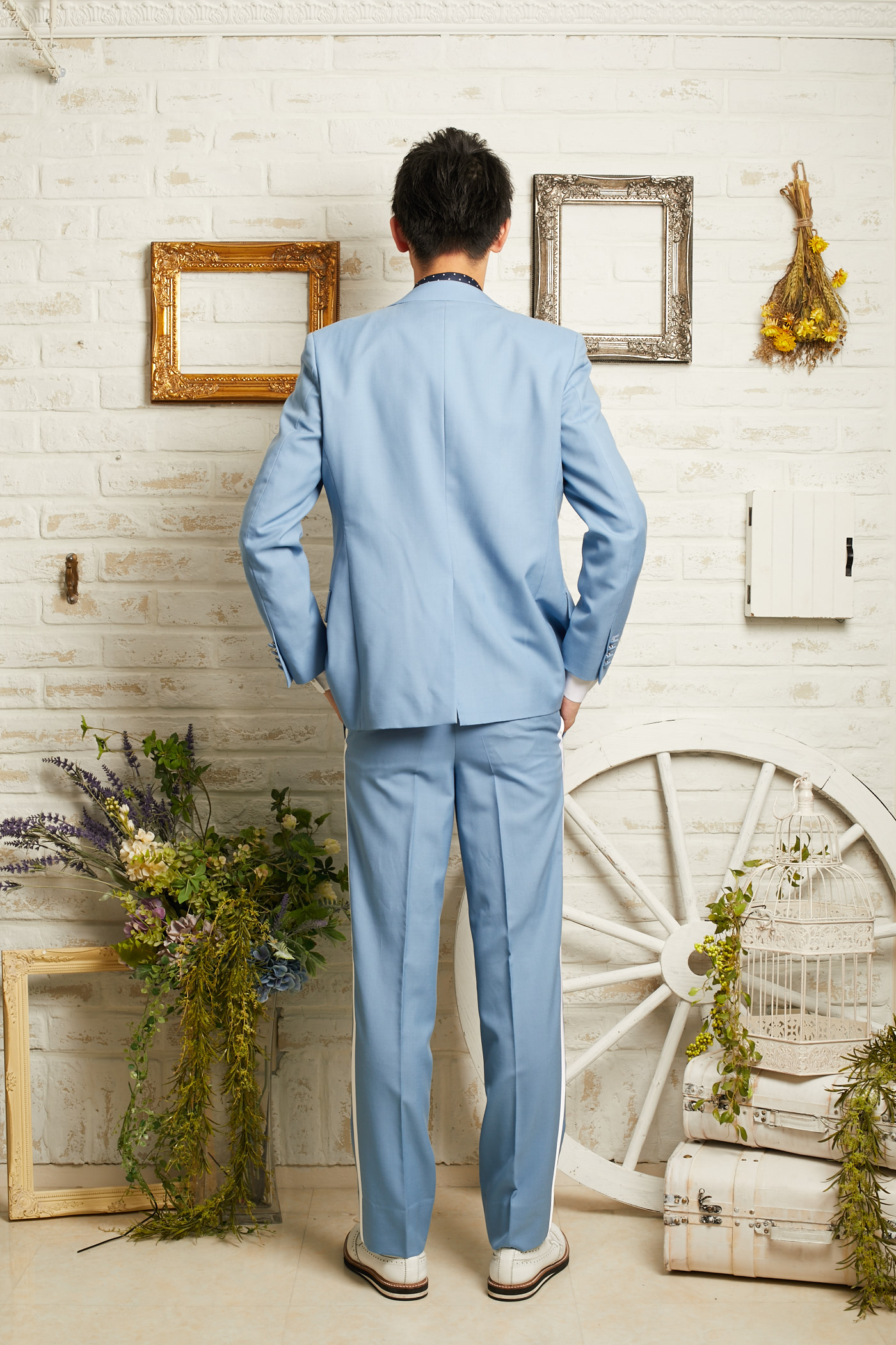 ライトブルーのパンツはマットな仕上がりで、とても上品な素材です。セットのジャケットと合わせればとっても華やかな印象になります。挙式などにもお使い頂けるデザインとなっておりますので、前撮り写真撮影にもおすすめです。生地感はそれ程厚くないので、長時間着ていても負担は少ないと思います。披露宴のお色直し、二次会、1.5次会、リゾートウェディング、レストランウェディング、パーティー、様々なシーンでご利用頂けます。サイドに入ったホワイトのラインがアクセントになっていてスッキリした印象に見えます。ウェストにはアジャスターがついているので、サイズ調整可能。お客様のサイズに合わせる事が出来ます。