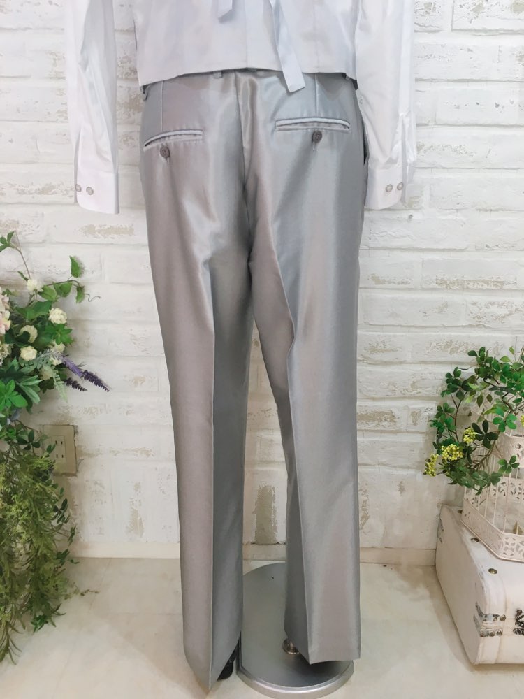 パンツは光沢感のある上品な素材です。セットのジャケットと合わせれば挙式などにもお使い頂けるデザインとなっておりますので、前撮り写真撮影にもおすすめです。生地感はそれ程厚くないので、長時間着ていても負担は少ないと思います。パンツウェストにはアジャスター付きなので、お客様の丁度いいサイズに合わせる事が可能。