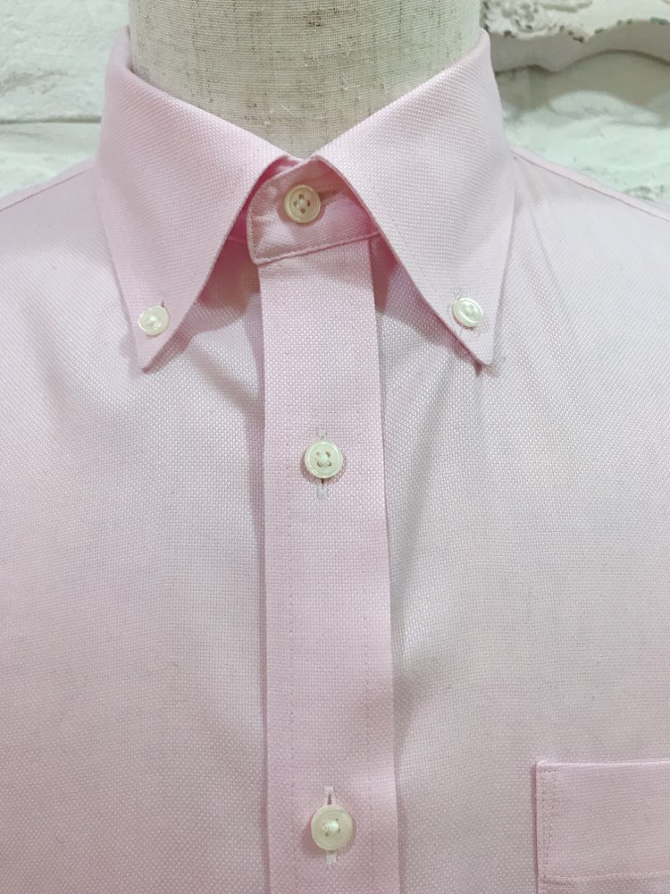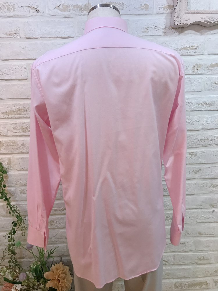 ピンクのコットン混紡素材の長袖シャツ。やわらかな生地感。薄いドット柄が入った軽やかな印象のスタイル。ボタンダウンカラー。ネイビー、ブルー、ホワイト、グレー、シルバー、ブラック、ライトブルー等の無地タキシードやジャケットの他、チェックなどの柄物とも相性が良いです。ノージャケットのベストスタイルもおすすめです。ガーデンウェディングやロケーションフォト等でカジュアルな着こなしをしたい方におすすめです。袖口周りをボタンで調節できます。裾はラウンドカット。スリムフィット?肩幅が狭めで、ウエストを絞った細身のフィット。ボディラインに沿ったシルエットを創り出します。